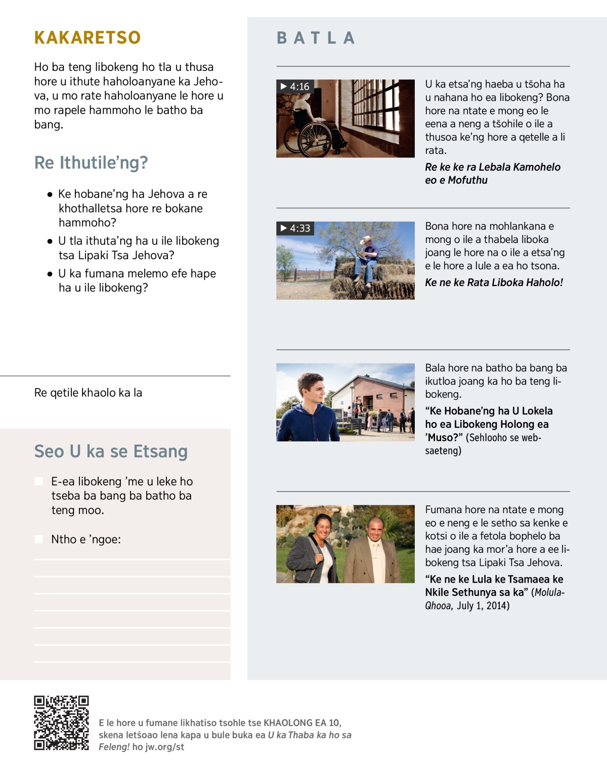 2. U tla ithuta’ng ha u ile libokeng tsa rona?