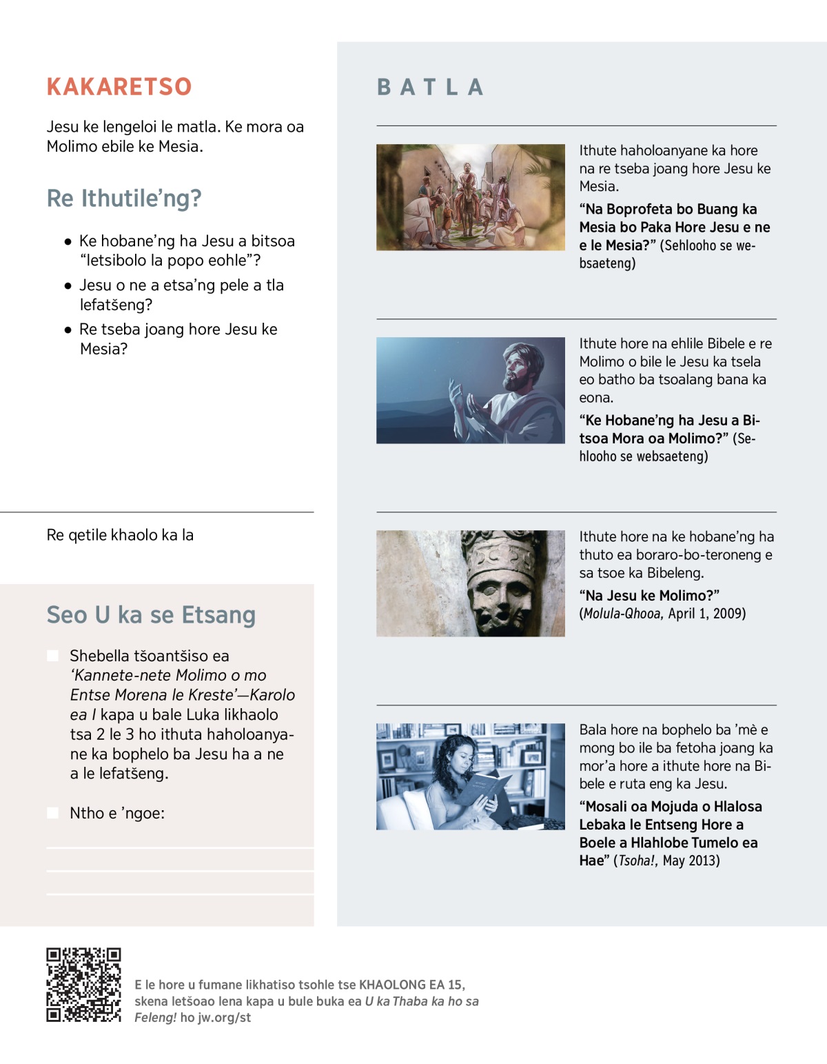 “Ke Hobane’ng ha Jesu a Bitsoa Mora oa Molimo?” (Sehlooho se websaeteng)