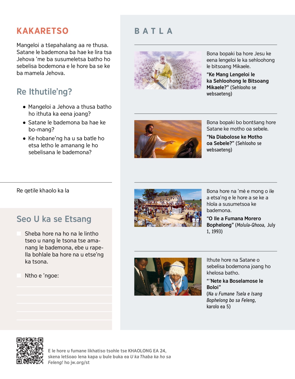 Ithute ka lintho tse ntle tseo mangeloi a li etsang, likotsi tsa ho sebelisana le bademona le kamoo re ka itšireletsang khahlanong le Satane le bademona.