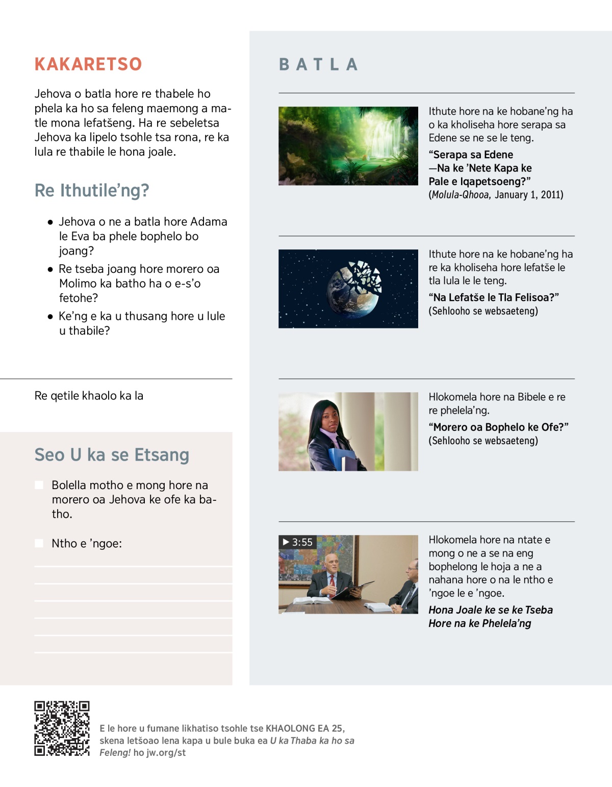 1. Jehova o batla hore re phele bophelo bo joang?