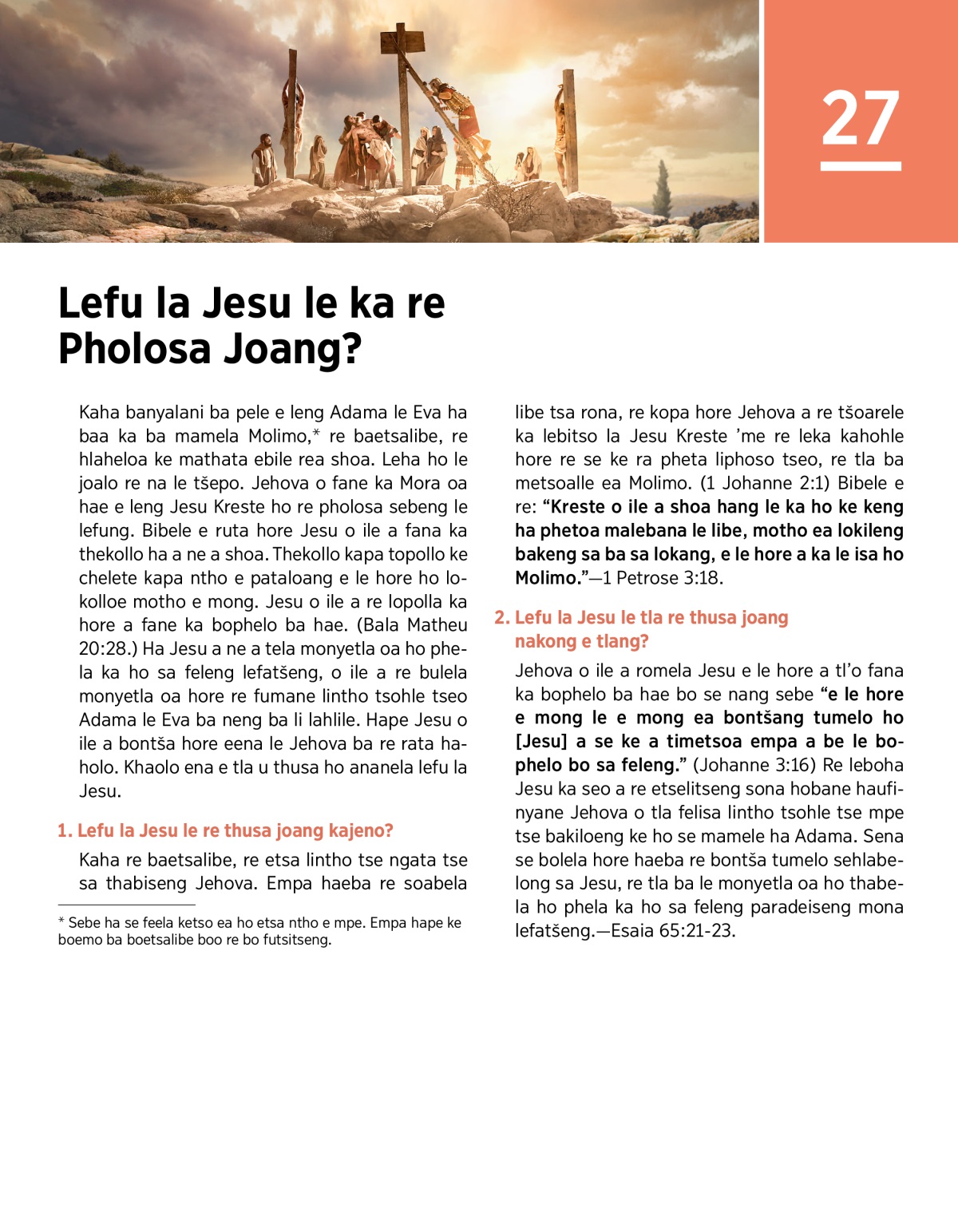 1. Lefu la Jesu le re thusa joang kajeno?
