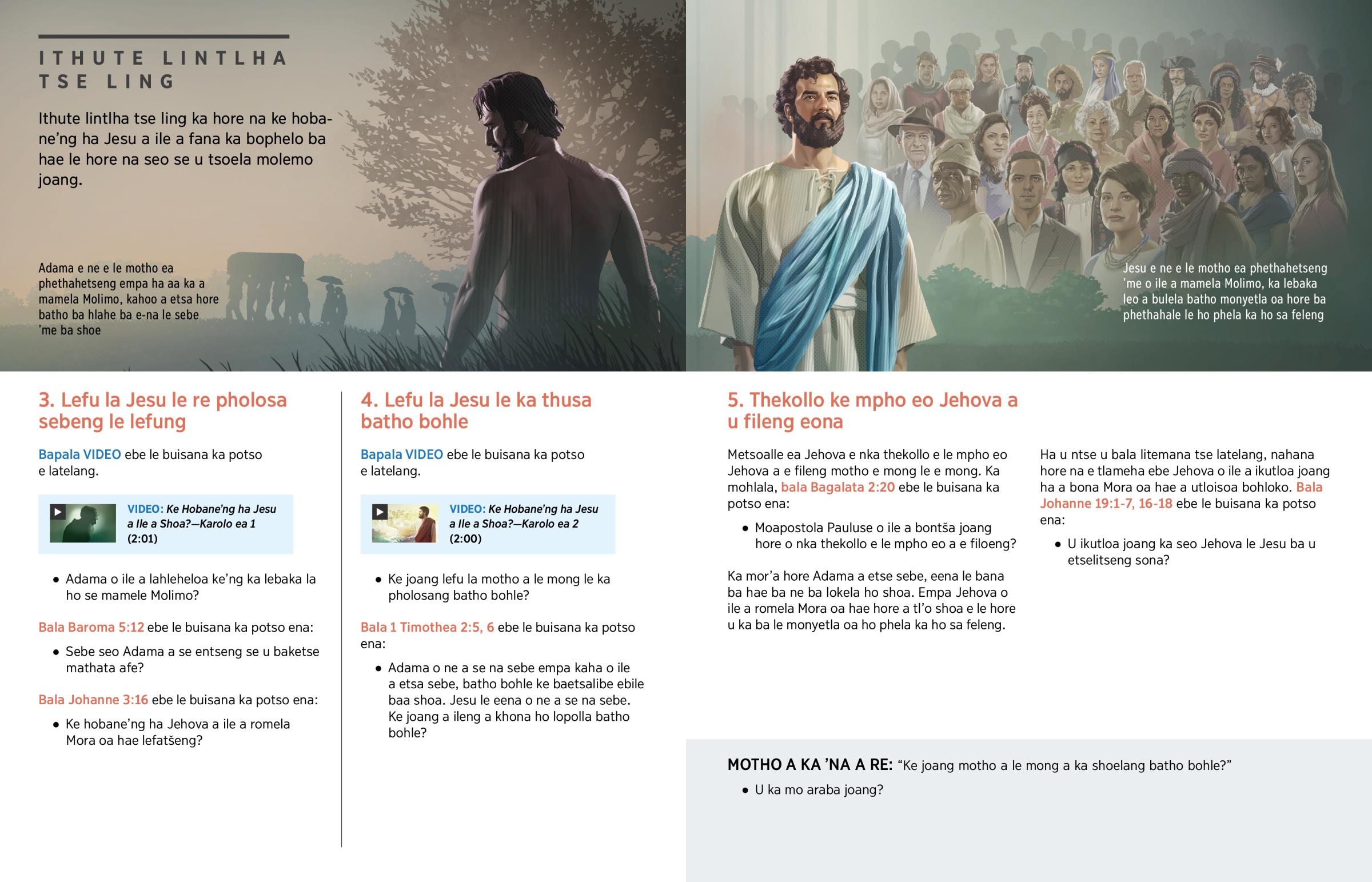 • Adama o ne a se na sebe empa kaha o ile a etsa sebe, batho bohle ke baetsalibe ebile baa shoa. Jesu le eena o ne a se na sebe. Ke joang a ileng a khona ho lopolla batho bohle?