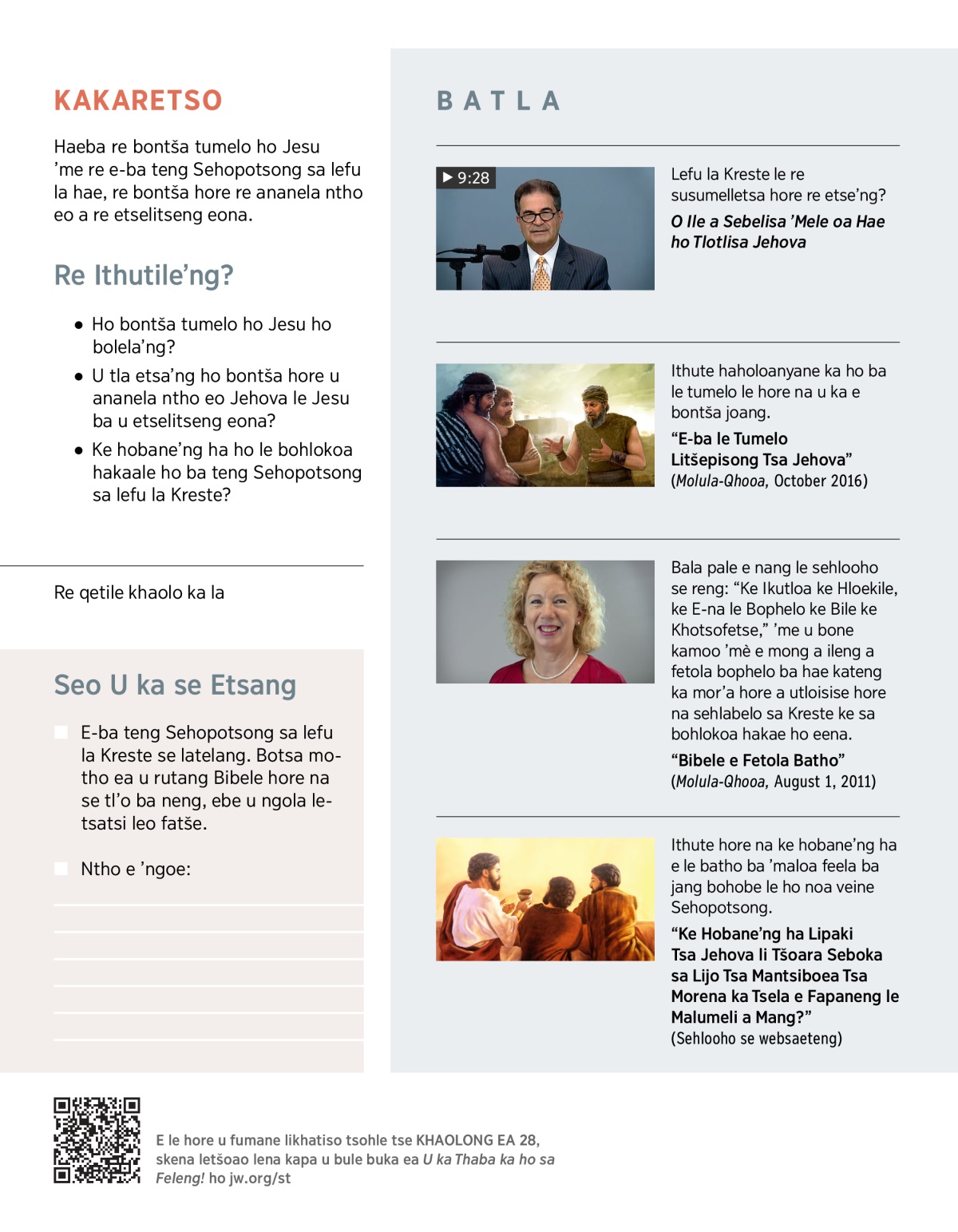 “E-ba le Tumelo Litšepisong Tsa Jehova” (Molula-Qhooa, October 2016)