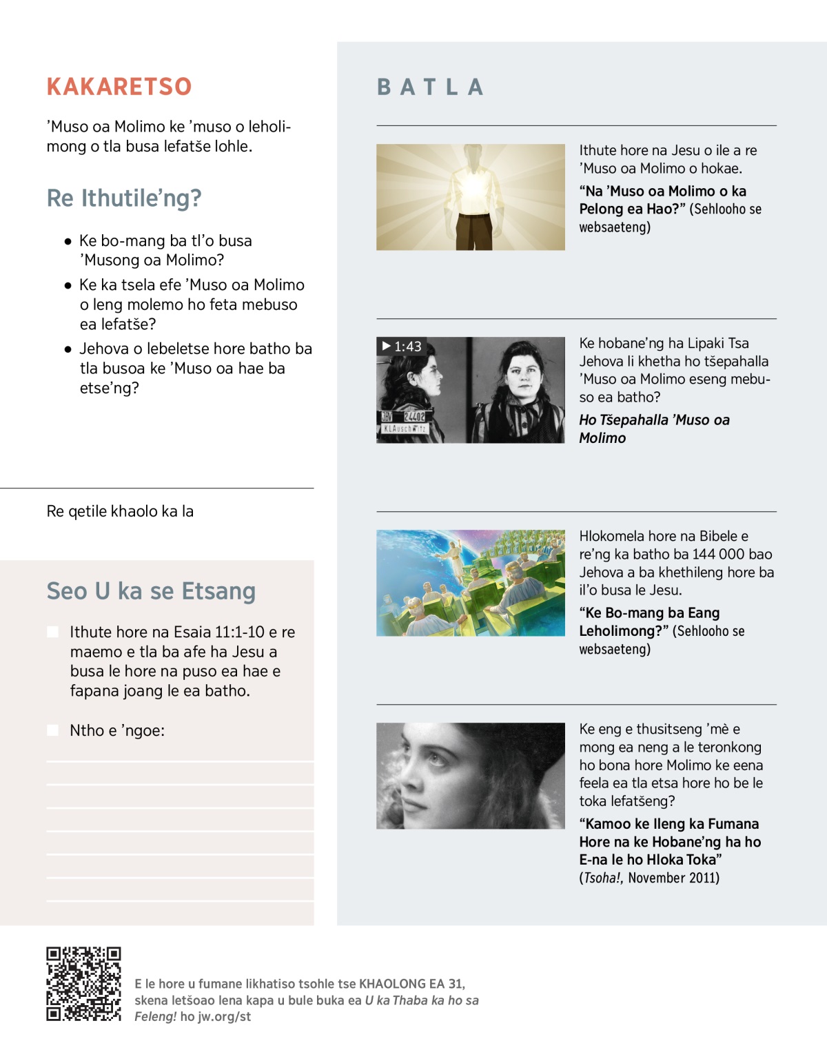 MOTHO A KA ’NA A RE: “ ’Muso oa Molimo ke eng?”