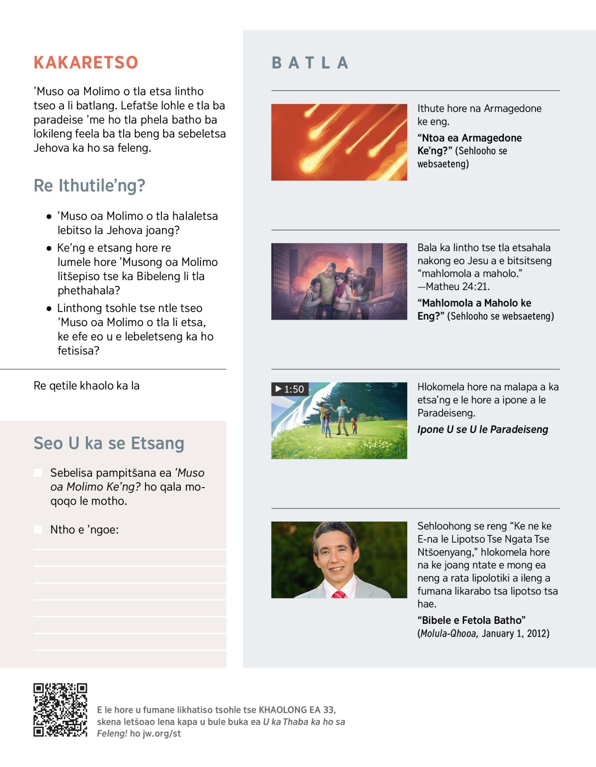 Khaolo ea 33. Batho ba lulang paradeiseng lefatšeng.