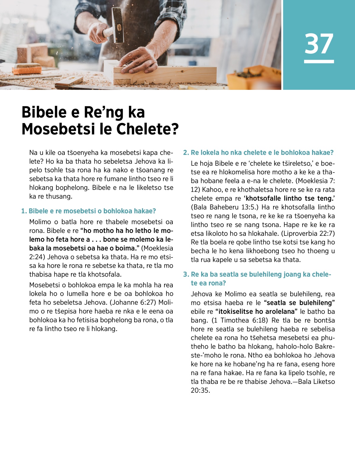 Bibele e Re’ng ka Mosebetsi le Chelete?