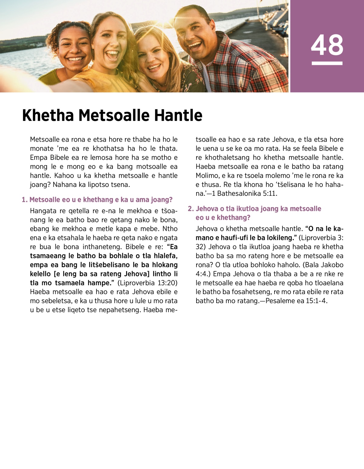 • Ke hobane’ng ha re sa lokela ho khetha lithaka tsa rona kapa batho ba boemong bo tšoanang le ba rona feela hore e be metsoalle ea rona?