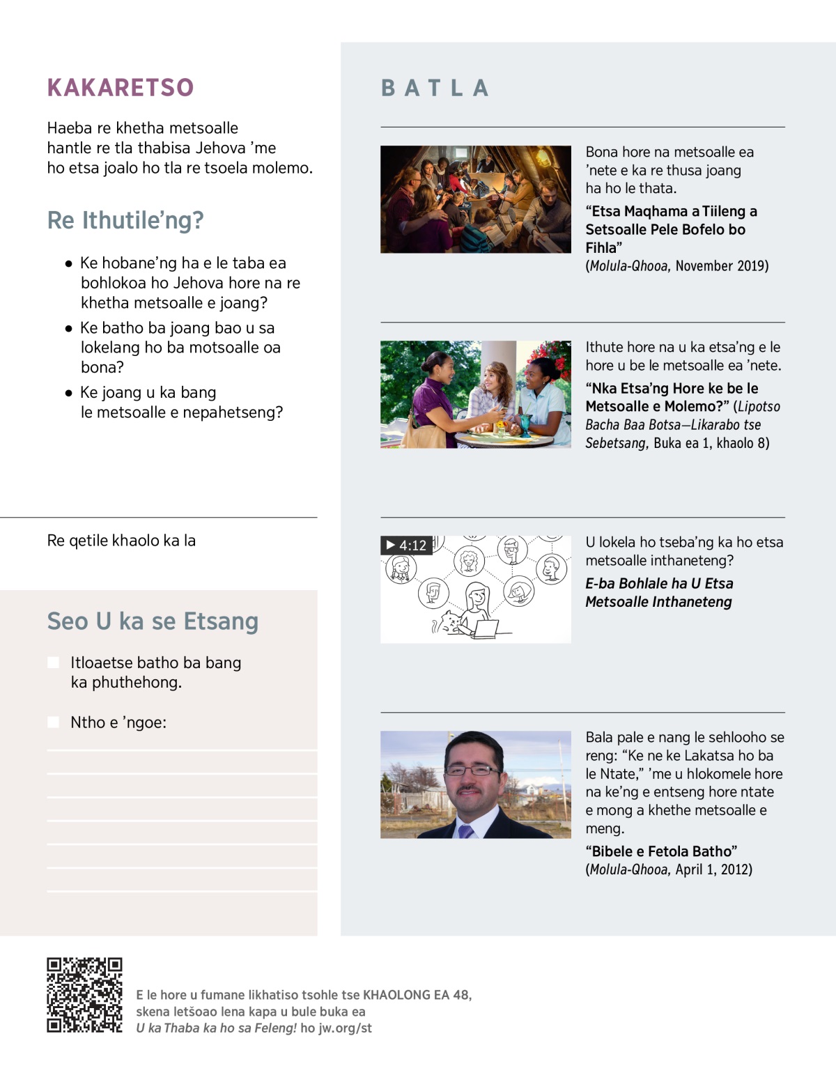 E-ba Bohlale ha U Etsa Metsoalle Inthaneteng (4:​12)