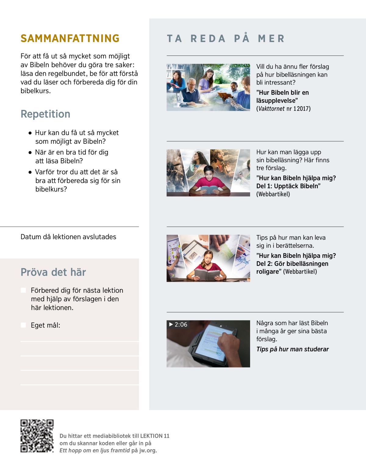 Håll koll på vad du har läst. Använd schemat ”Bocka av vad du har läst” som finns i den här boken.
