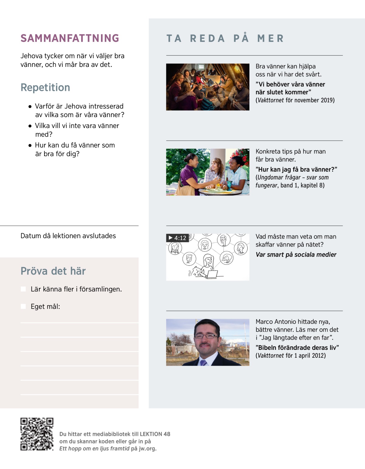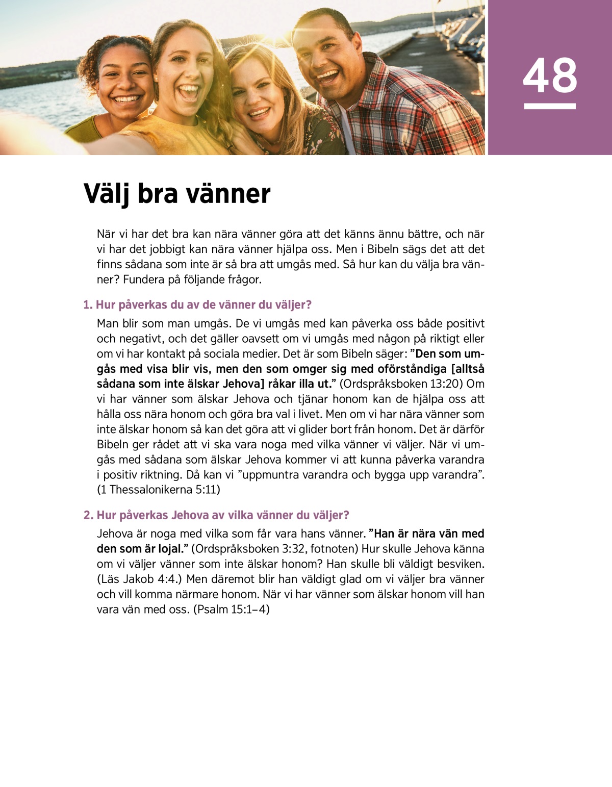 När vi har det bra kan nära vänner göra att det känns ännu bättre, och när vi har det jobbigt kan nära vänner hjälpa oss. Men i Bibeln sägs det att det finns sådana som inte är så bra att umgås med. Så hur kan du välja bra vänner? Fundera på följande frågor.