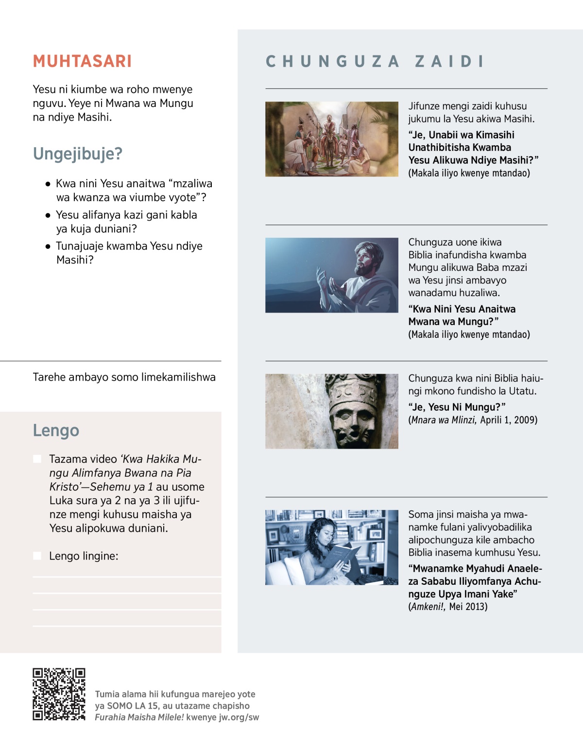 Jifunze mengi zaidi kuhusu jukumu la Yesu akiwa Masihi.