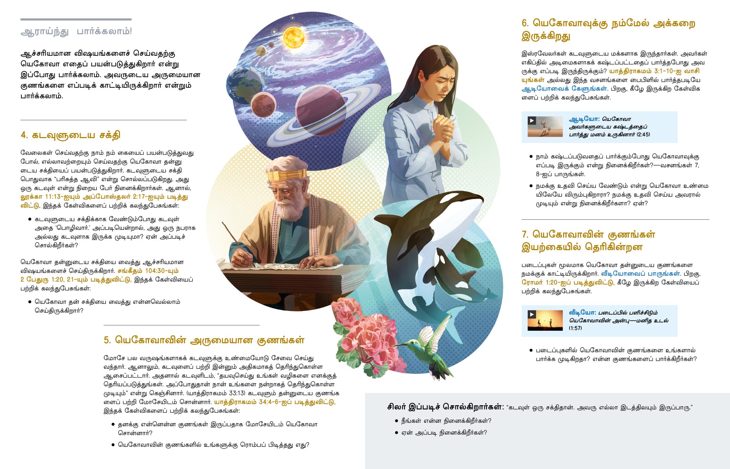 யெகோவா தன்னுடைய சக்தியை வைத்து ஆச்சரியமான விஷயங்களைச் செய்திருக்கிறார். சங்கீதம் 104:30-யும் 2 பேதுரு 1:20, 21-யும் படித்துவிட்டு, இந்தக் கேள்வியைப் பற்றிக் கலந்துபேசுங்கள்: