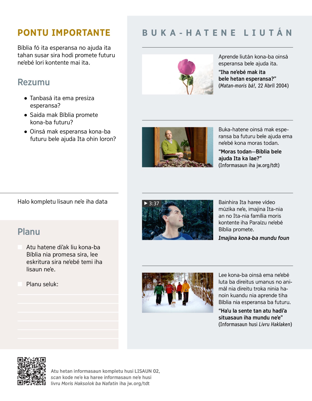 Eskritura sira-neʼe fó esperansa ba Ita ka lae? Ita sente neʼe mós bele fó esperansa ba Ita-nia família no belun ka lae?