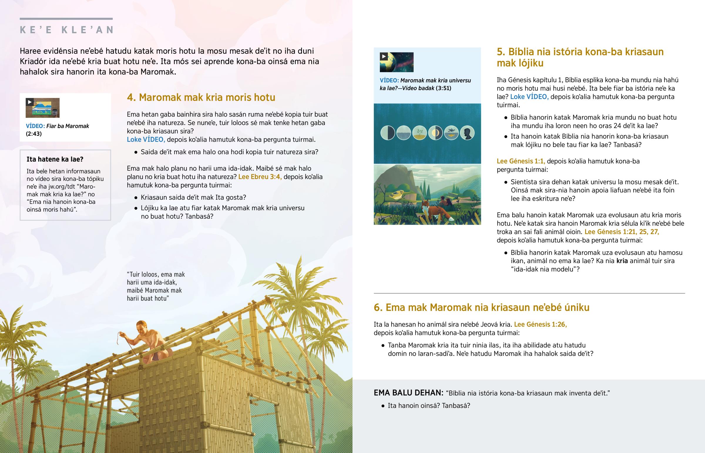Haree evidénsia neʼebé hatudu katak moris hotu la mosu mesak deʼit no iha duni Kriadór ida neʼebé kria buat hotu neʼe. Ita mós sei aprende kona-ba oinsá ema nia hahalok sira hanorin ita kona-ba Maromak.