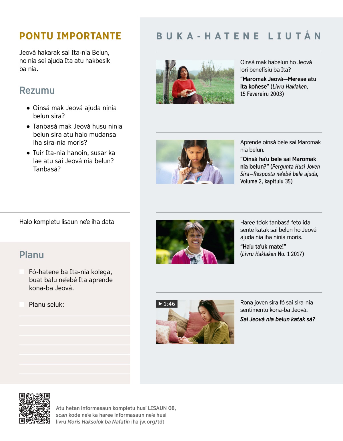 “Maromak Jeová—Merese atu ita koñese” (Livru Haklaken, 15 Fevereiru 2003)