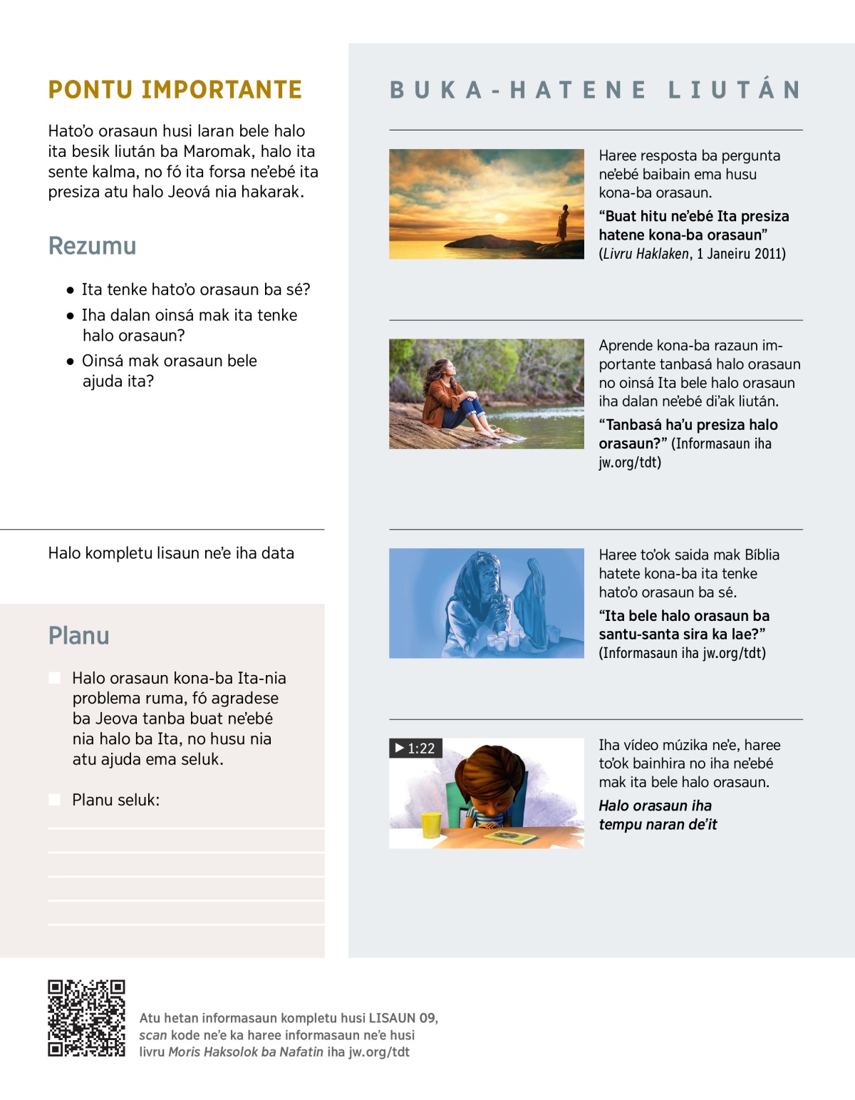 “Tanbasá haʼu presiza halo orasaun?” (Informasaun iha jw.org/tdt)