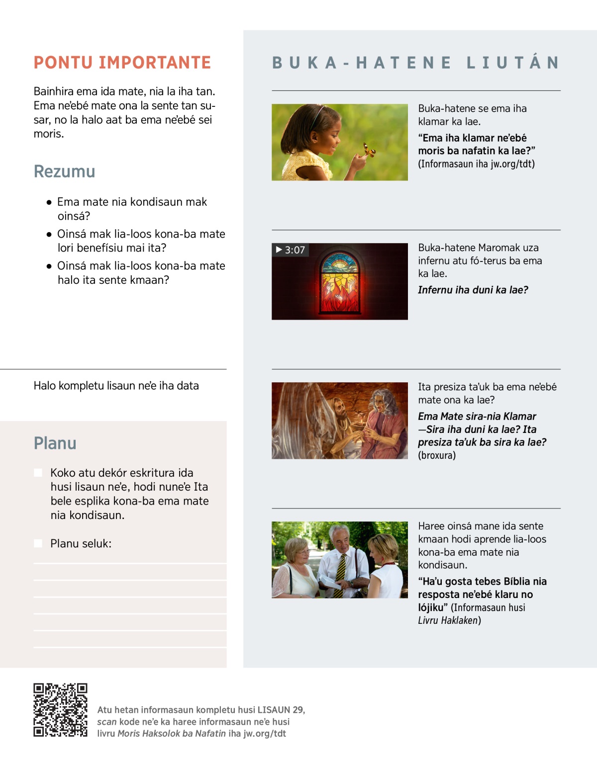 “Ema iha klamar neʼebé moris ba nafatin ka lae?” (Informasaun iha jw.org/tdt)