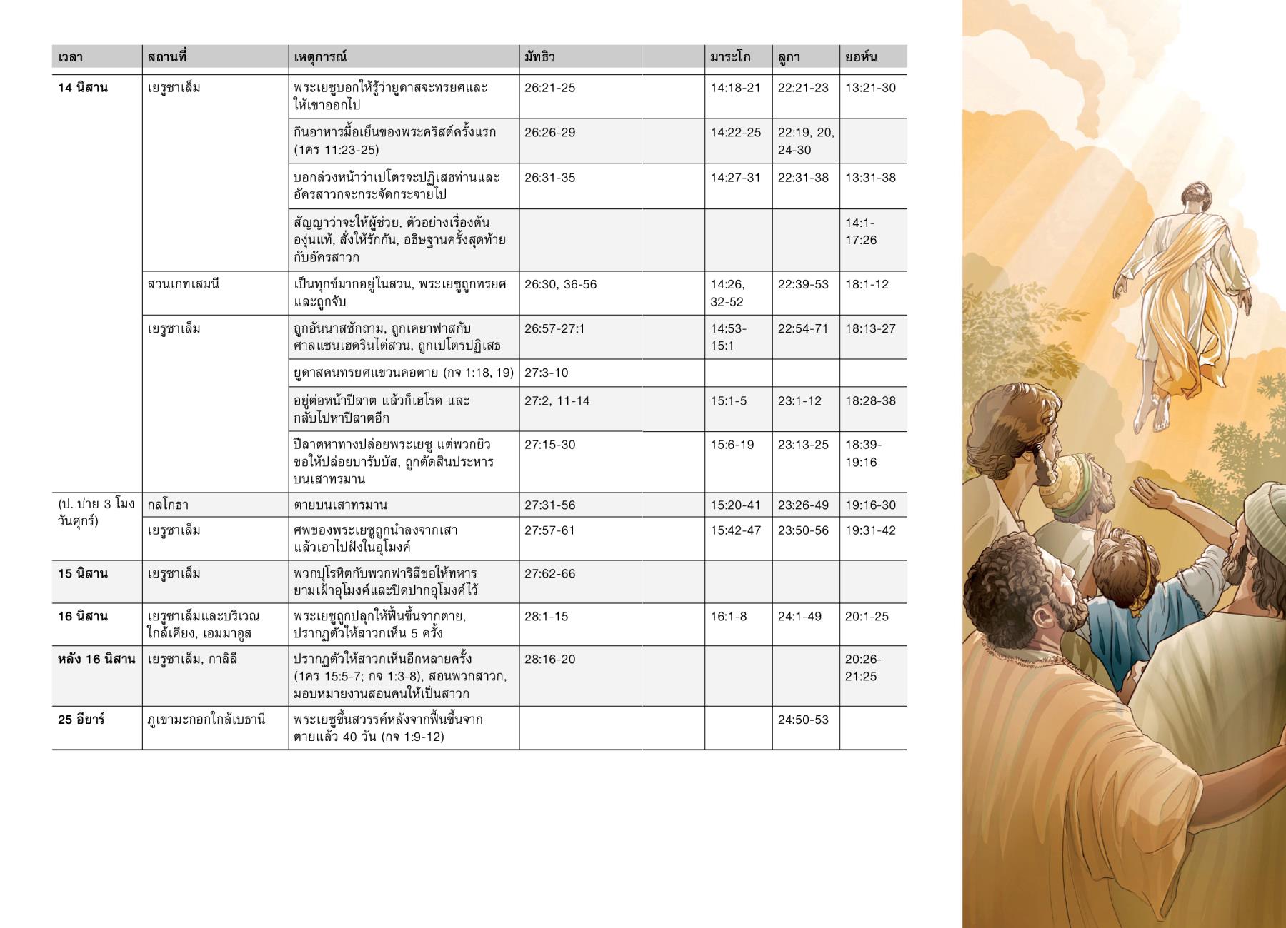 พระเยซูขึ้นสวรรค์หลังจากฟื้นขึ้นจากตายแล้ว 40 วัน (กจ 1:9-12) |