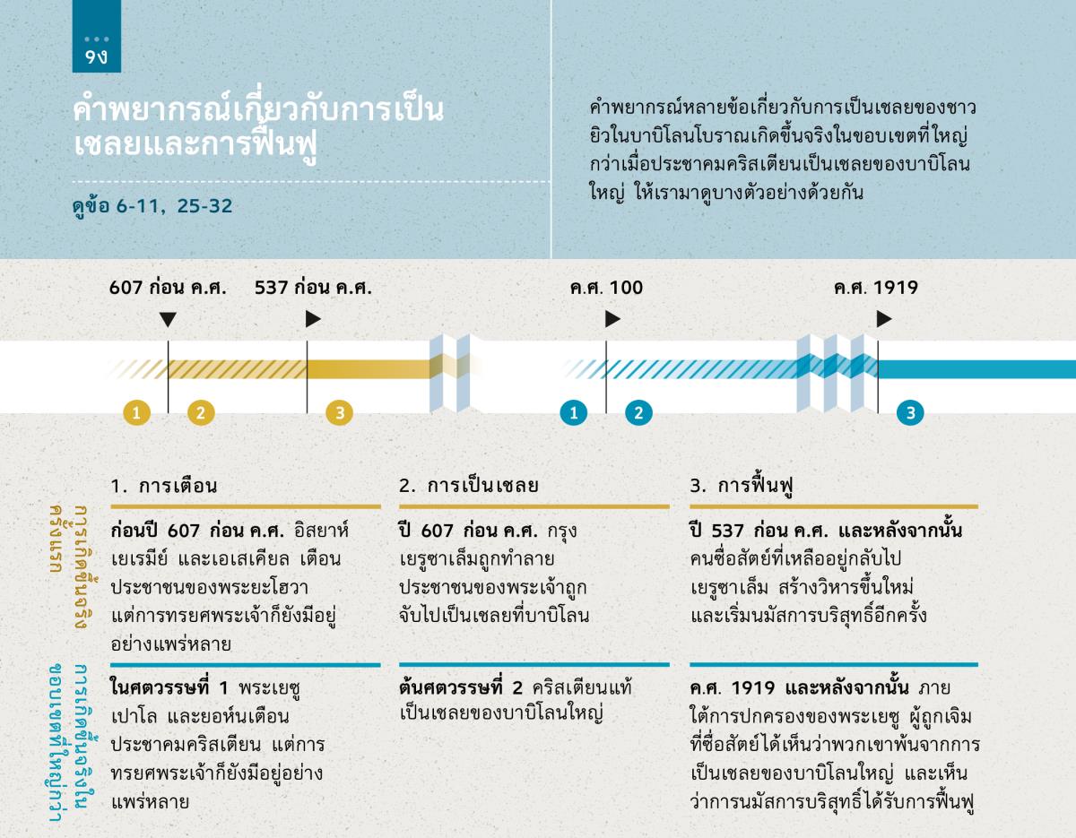 คำพยากรณ์หลายข้อเกี่ยวกับการเป็นเชลยของชาวยิวในบาบิโลนโบราณเกิดขึ้นจริงในขอบเขตที่ใหญ่กว่าเมื่อประชาคมคริสเตียนเป็นเชลยของบาบิโลนใหญ่ ให้เรามาดูบางตัวอย่างด้วยกัน