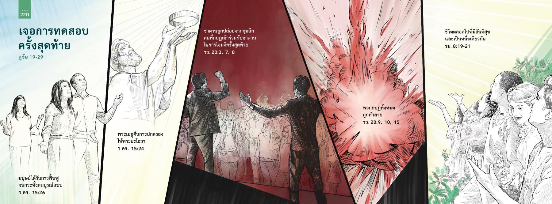 ซาตานถูกปล่อยจากขุมลึก คนที่กบฏเข้าร่วมกับซาตานในการโจมตีครั้งสุดท้าย—วว. 20:3, 7, 8