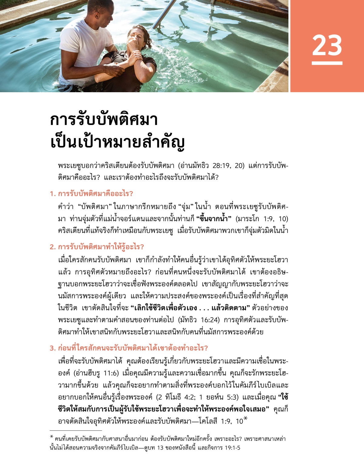 พระเยซูบอกว่าคริสเตียนต้องรับบัพติศมา (อ่านมัทธิว 28:19, 20) แต่การรับบัพติศมาคืออะไร? และเราต้องทำอะไรถึงจะรับบัพติศมาได้?
