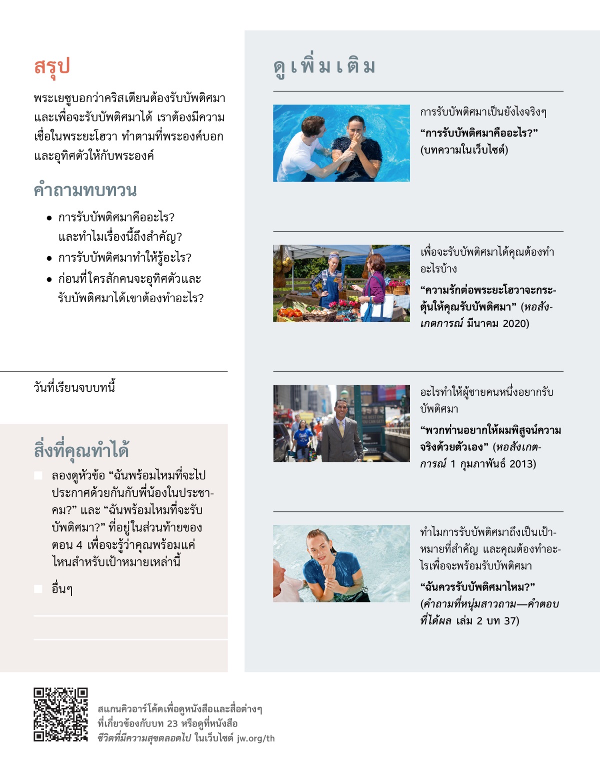 ถ้าคุณรู้สึกอย่างนั้น คุณคิดว่าจะทำอะไรได้บ้างเพื่อให้พร้อมที่จะรับบัพติศมา?