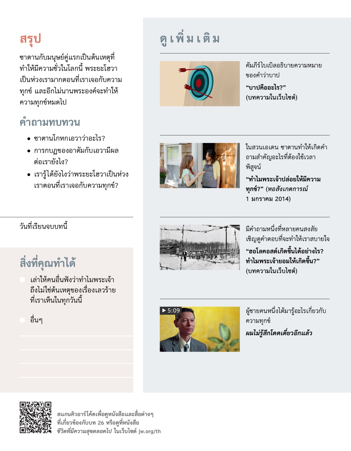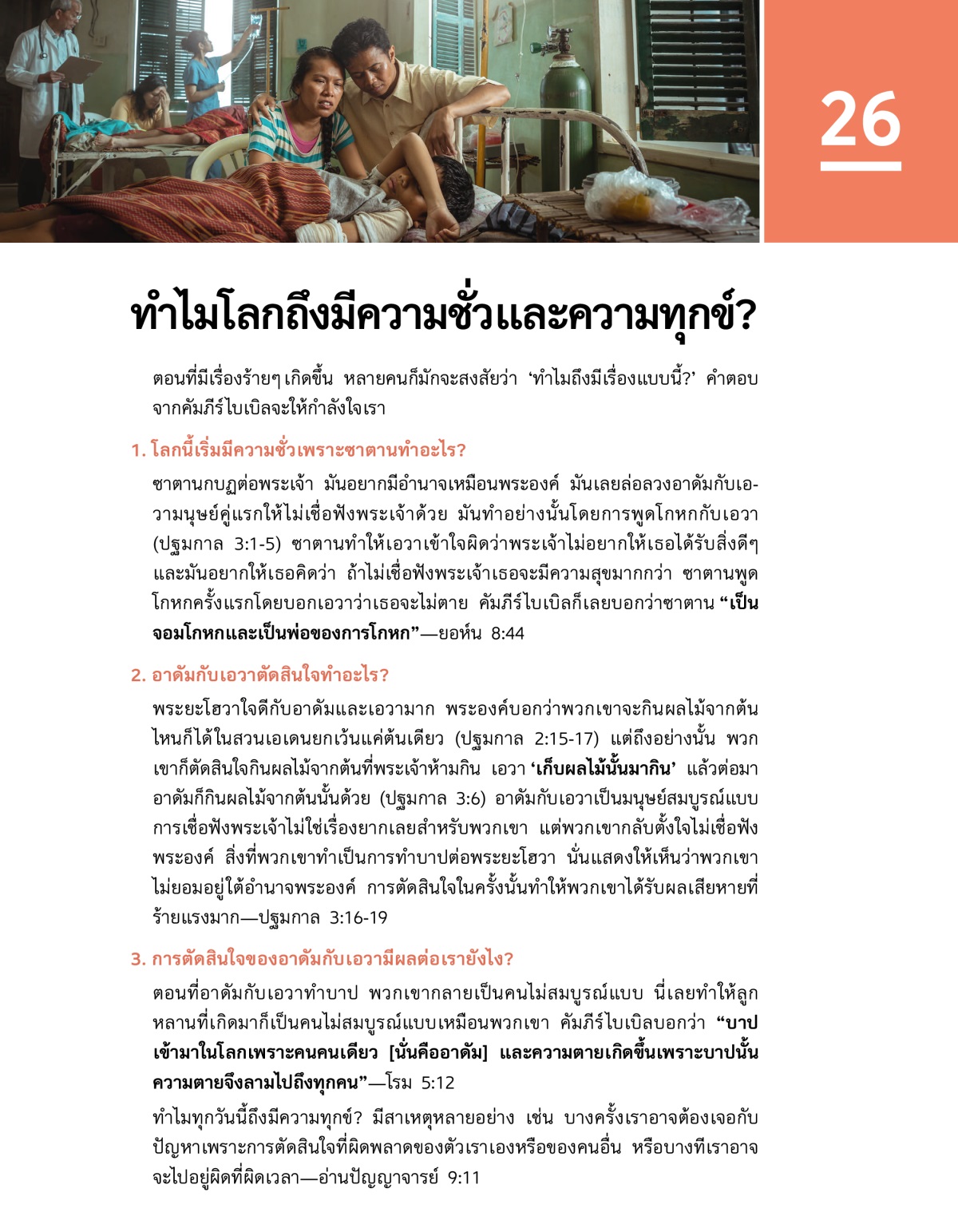 อ่านยากอบ 1:13 และ 1 ยอห์น 5:19 แล้วคุยกันเกี่ยวกับคำถามต่อไปนี้
