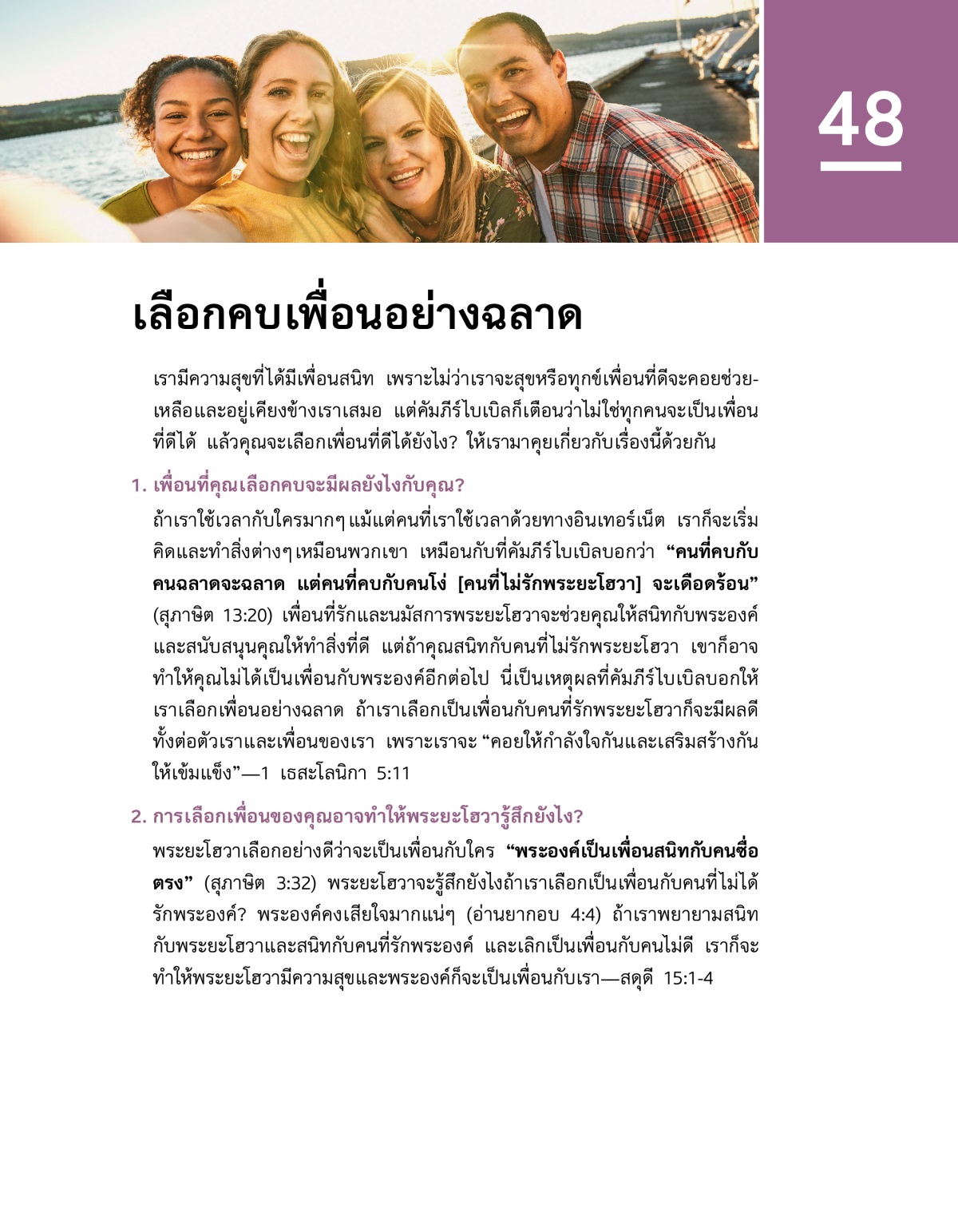 ถ้าเราเลือกเพื่อนอย่างฉลาดจะมีผลดีกับเรา และเราจะทำให้พระยะโฮวามีความสุข