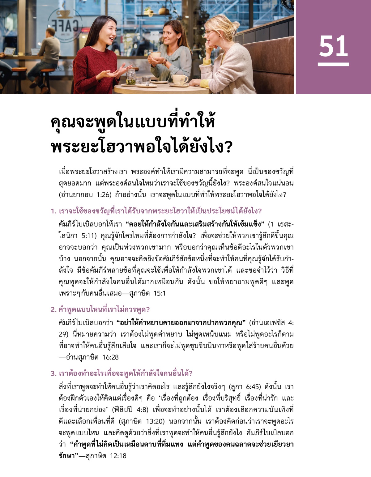 เราจะพูดในแบบที่ทำให้พระยะโฮวาพอใจและให้กำลังใจคนอื่นได้ยังไง