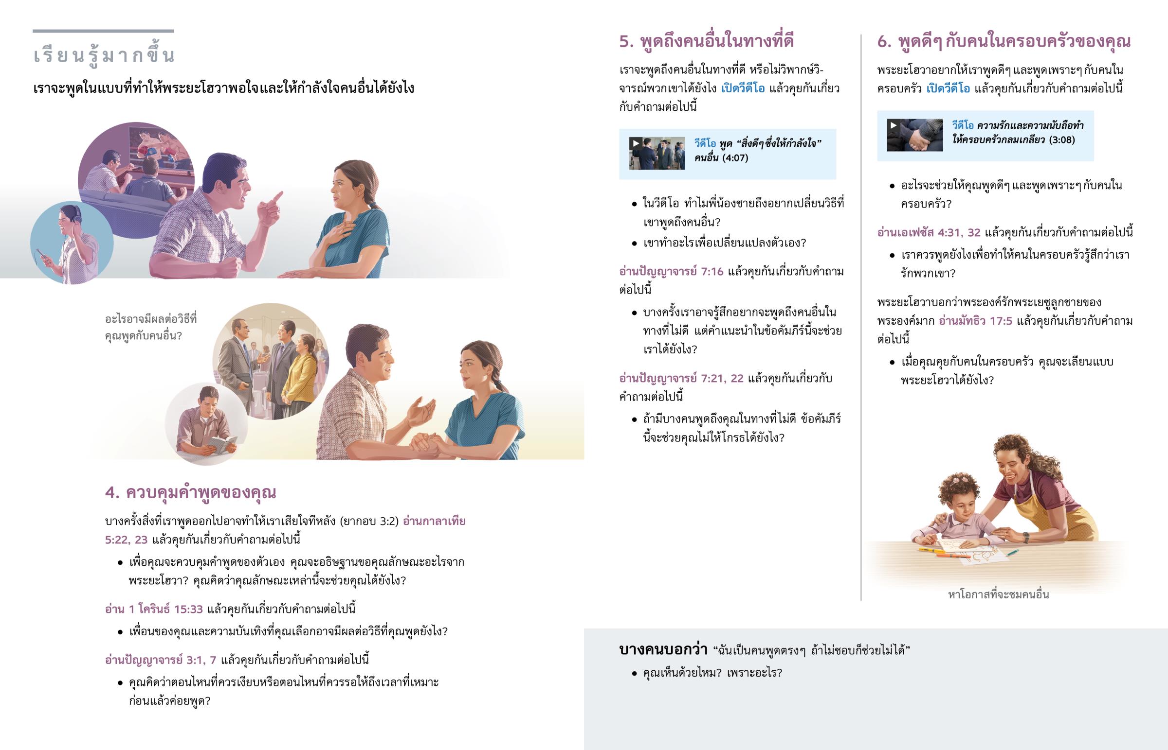 พระยะโฮวาอยากให้เราพูดดี ๆ และพูดเพราะ ๆ กับคนในครอบครัว เปิดวีดีโอ แล้วคุยกันเกี่ยวกับคำถามต่อไปนี้