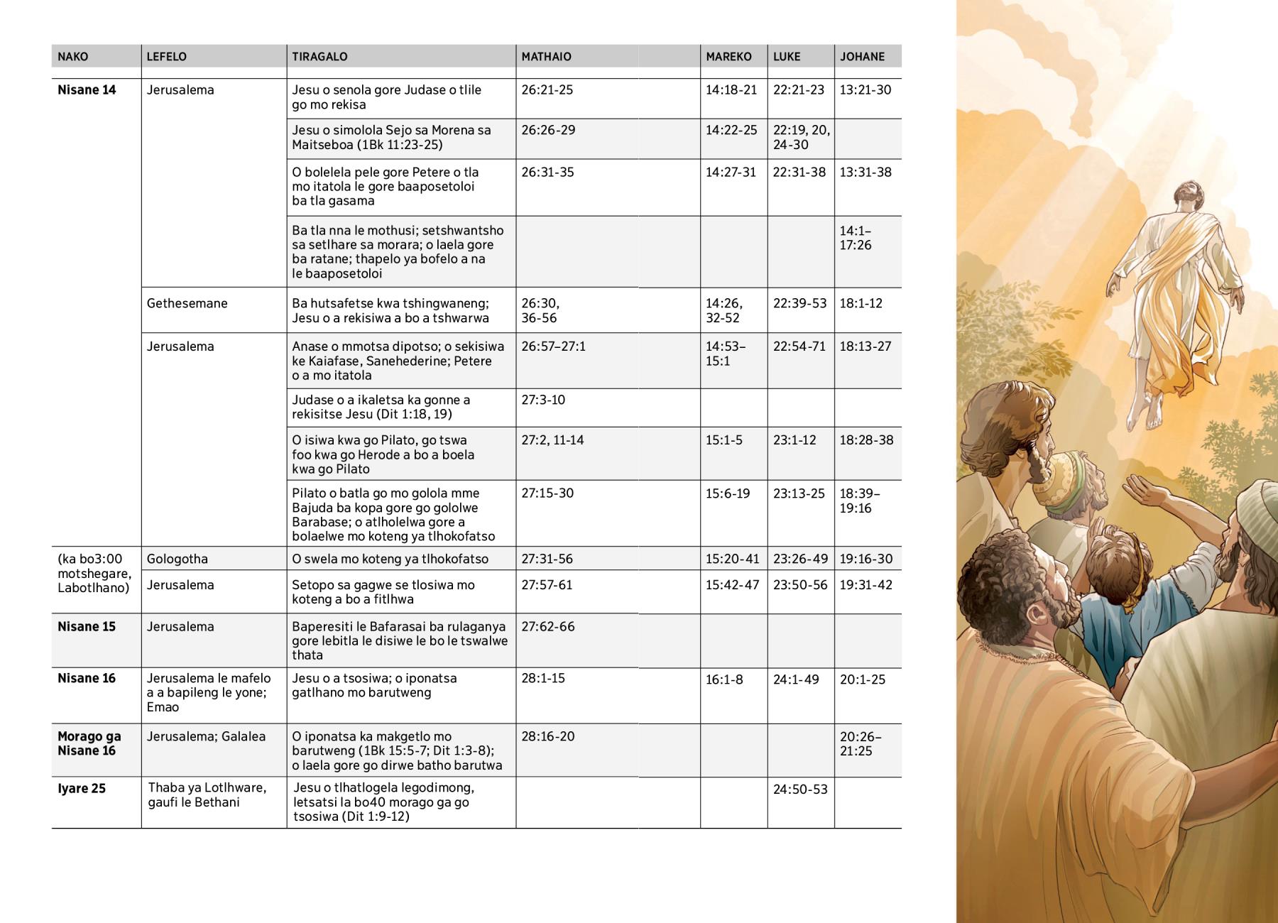 Jesu o tlhatlogela legodimong, letsatsi la bo40 morago ga go tsosiwa (Dit 1:9-12) |