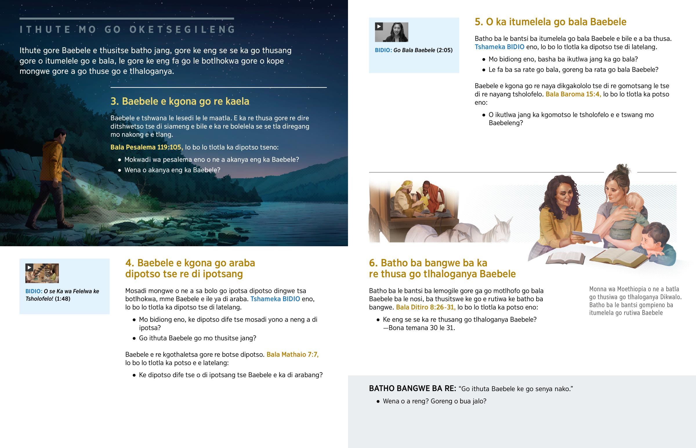 Ithute gore Baebele e thusitse batho jang, gore ke eng se se ka go thusang gore o itumelele go e bala, le gore ke eng fa go le botlhokwa gore o kope mongwe gore a go thuse go e tlhaloganya.