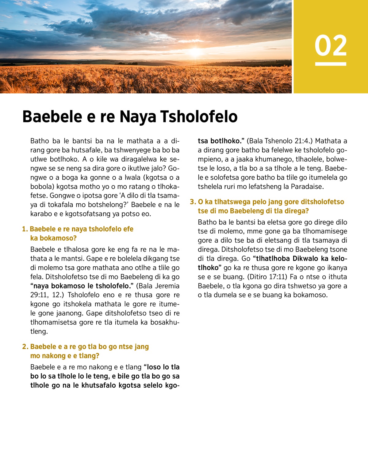 1. Baebele e re naya tsholofelo efe ka bokamoso?