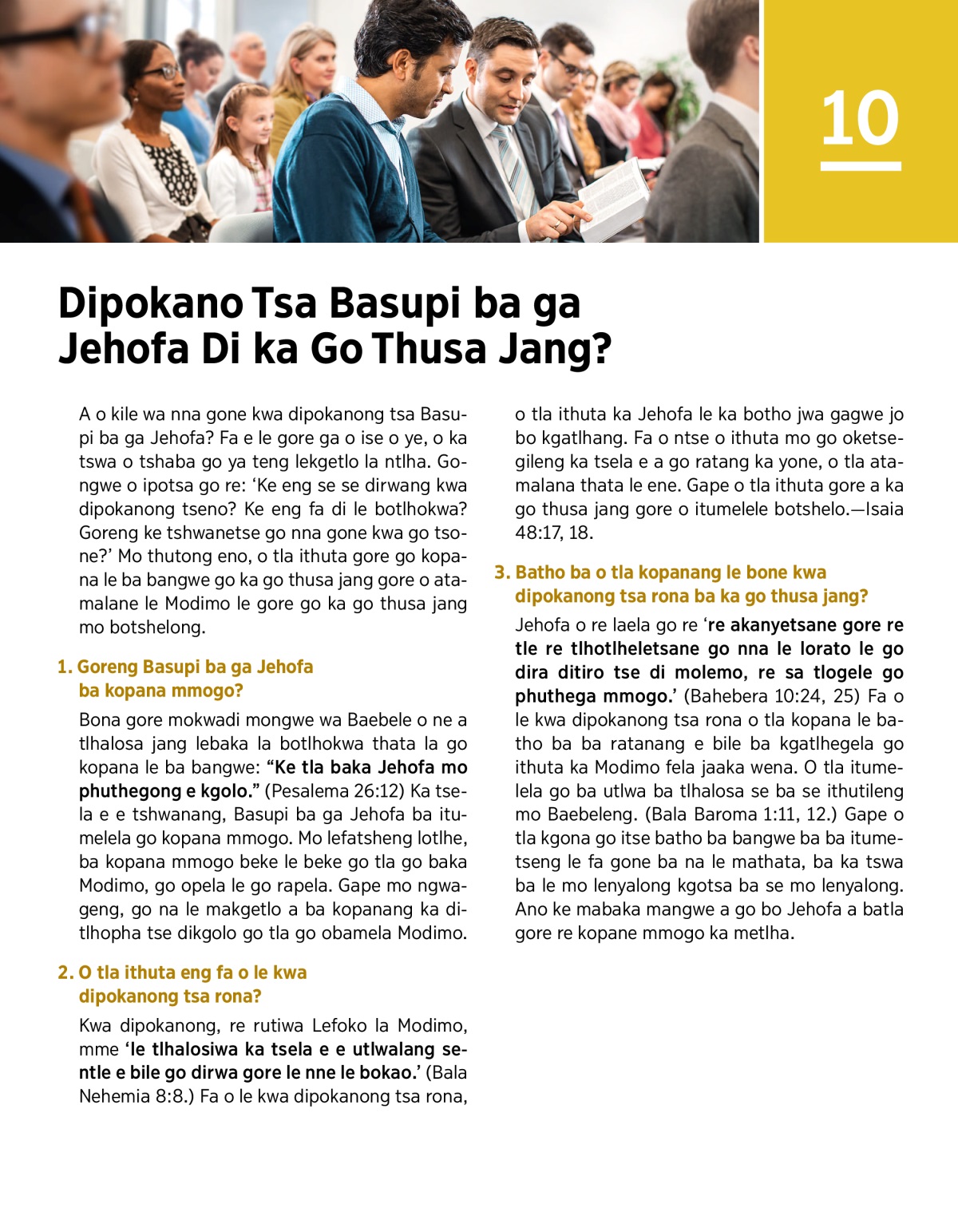 Wena le motho yo o go rutang Baebele, tlotlang ka dintlha tse di tla ithutiwang kwa pokanong e e latelang.