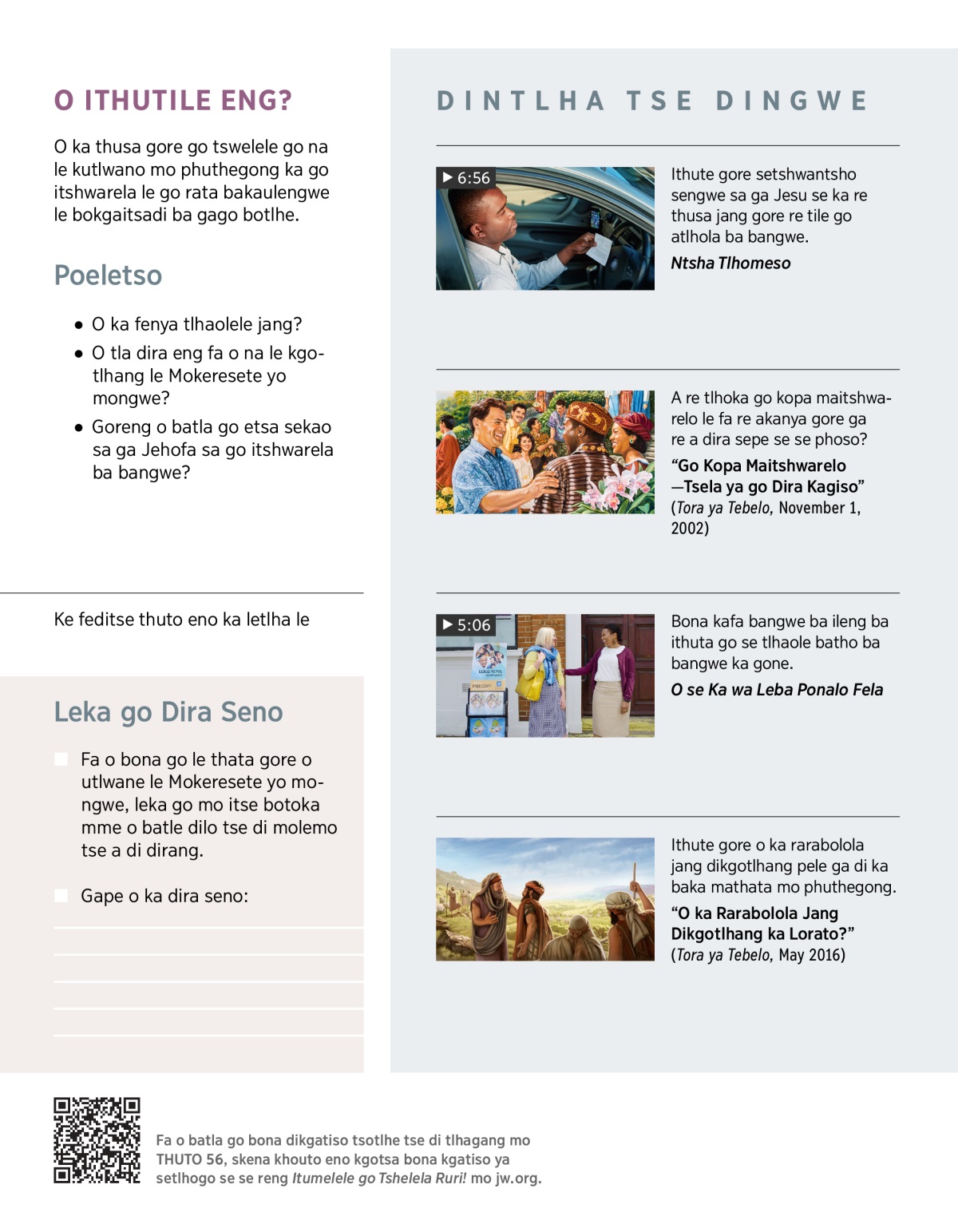 Fa re itse bakaulengwe le bokgaitsadi ba rona botoka, re tla itse dinonofo tsa bone le makoa a bone. Re ka dira jang gore re tlhome mogopolo mo dilong tse di molemo tse ba di dirang? Tshameka BIDIO eno, lo bo lo tlotla ka potso e e latelang.