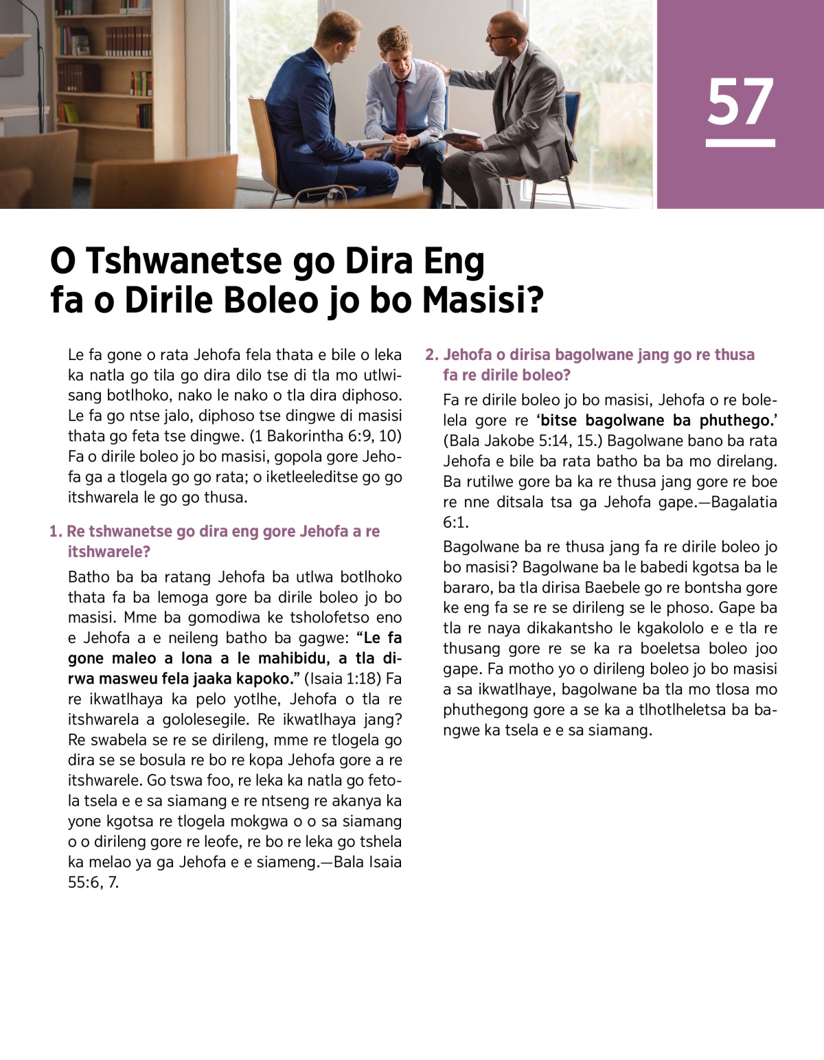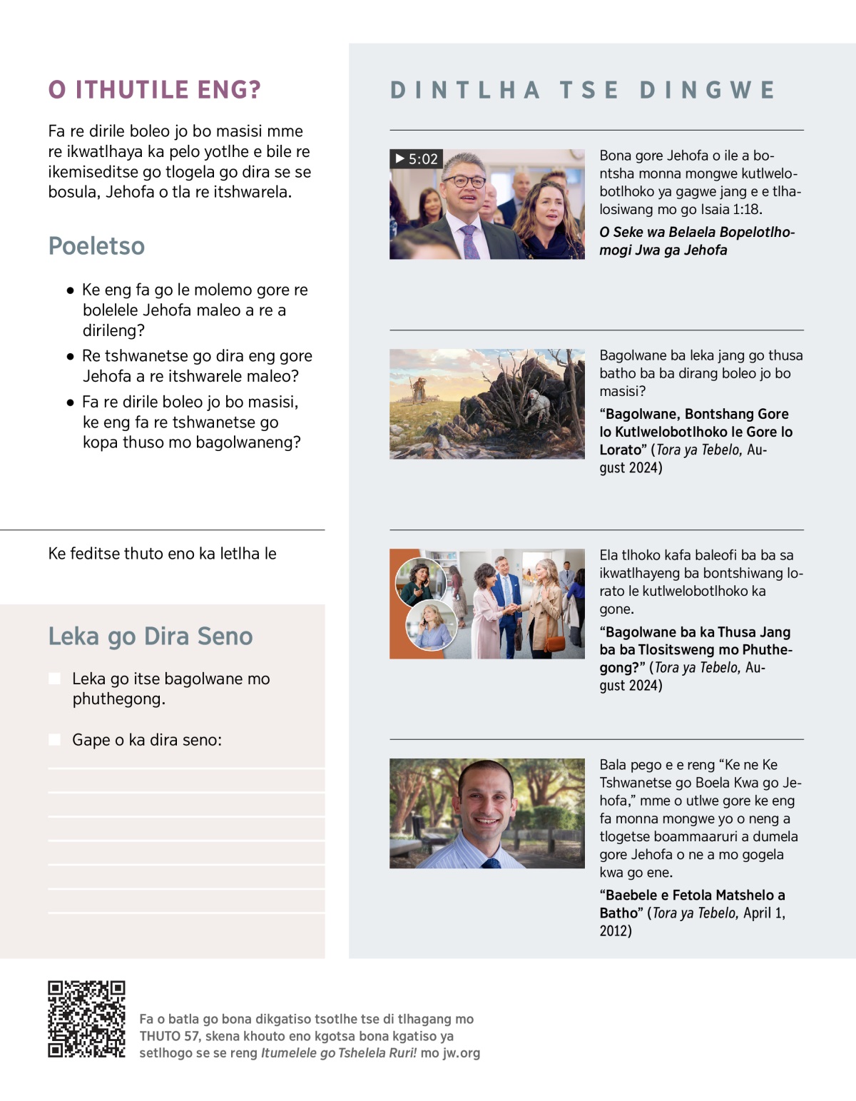 “Bagolwane ba ka Thusa Jang ba ba Tlositsweng mo Phuthegong?” (Tora ya Tebelo, August 2024)