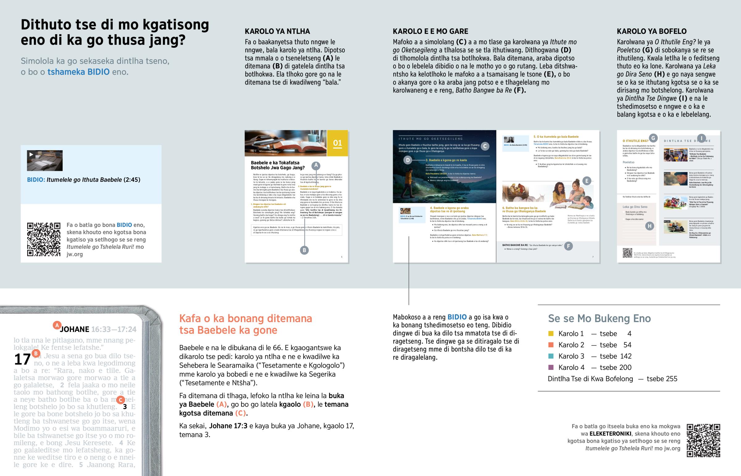 Fa o baakanyetsa thuto nngwe le nngwe, bala karolo ya ntlha. Dipotso tsa mmala o o tseneletseng (A) le ditemana (B) di gatelela dintlha tsa botlhokwa. Ela tlhoko gore go na le ditemana tse di kwadilweng “bala.”