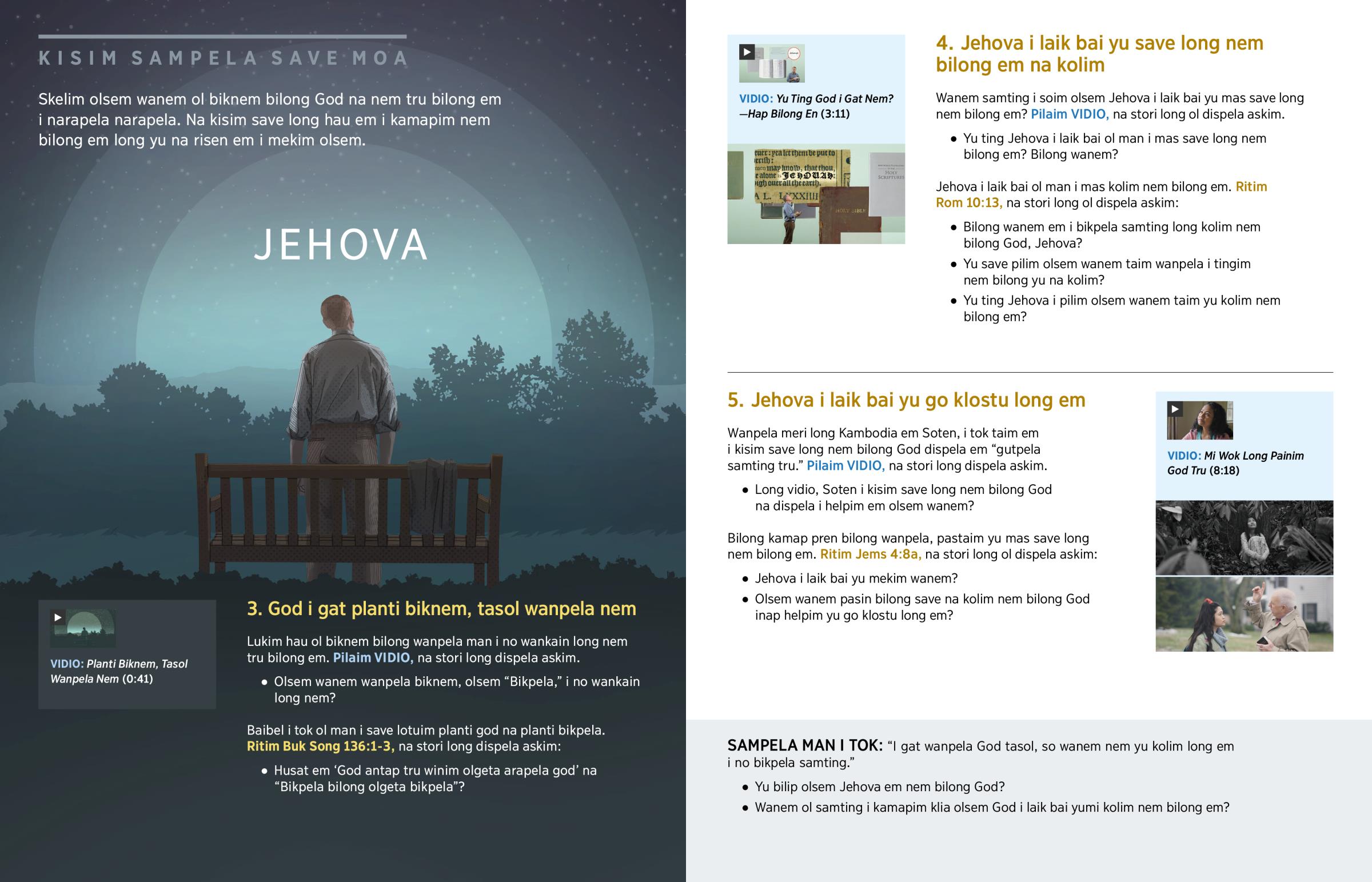 4. Jehova i laik bai yu save long nem bilong em na kolim