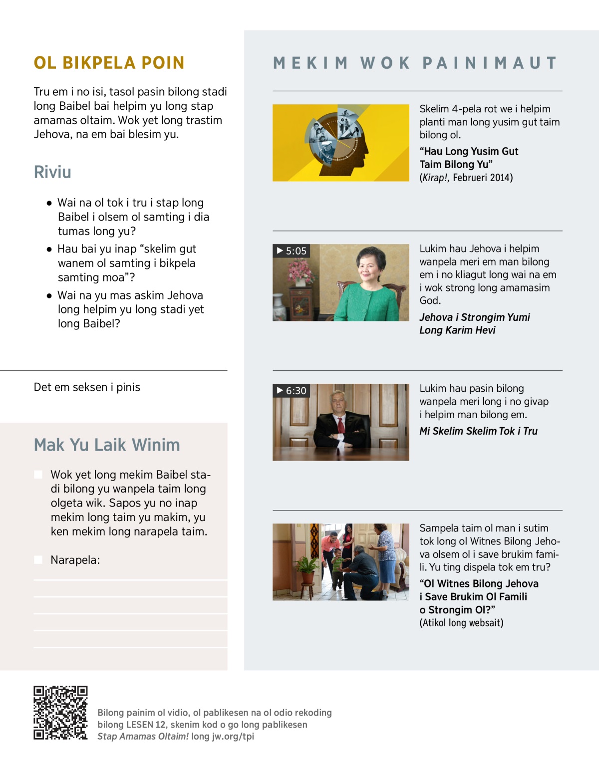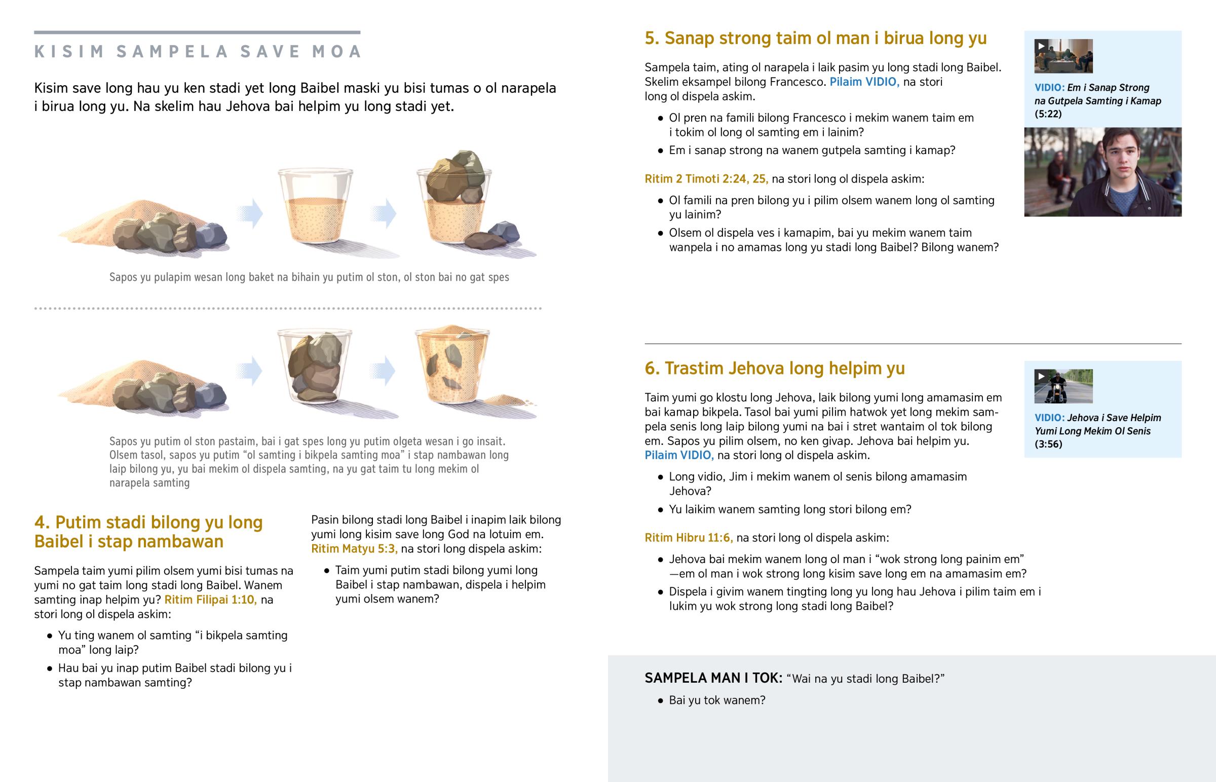 4. Putim stadi bilong yu long Baibel i stap nambawan