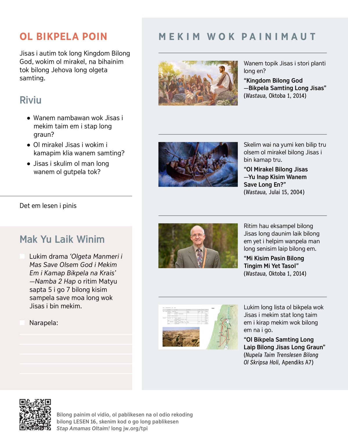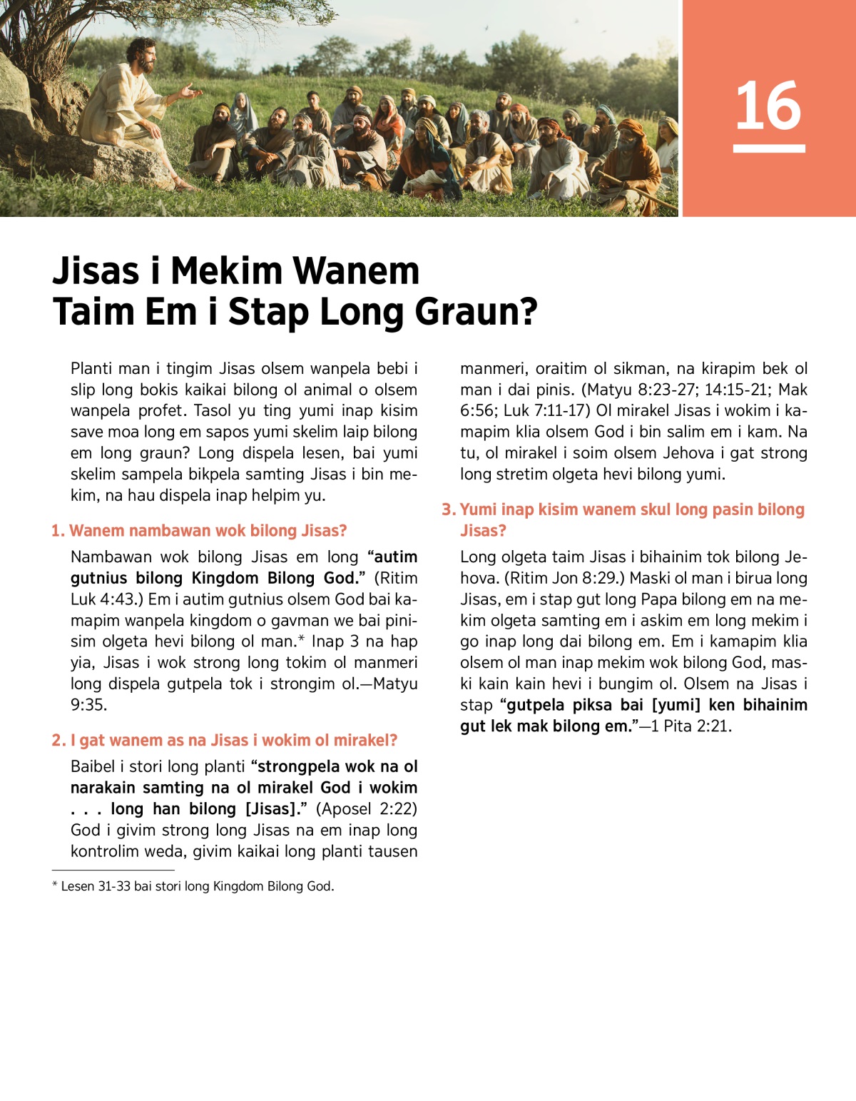 a Lesen 31-33 bai stori long Kingdom Bilong God.
