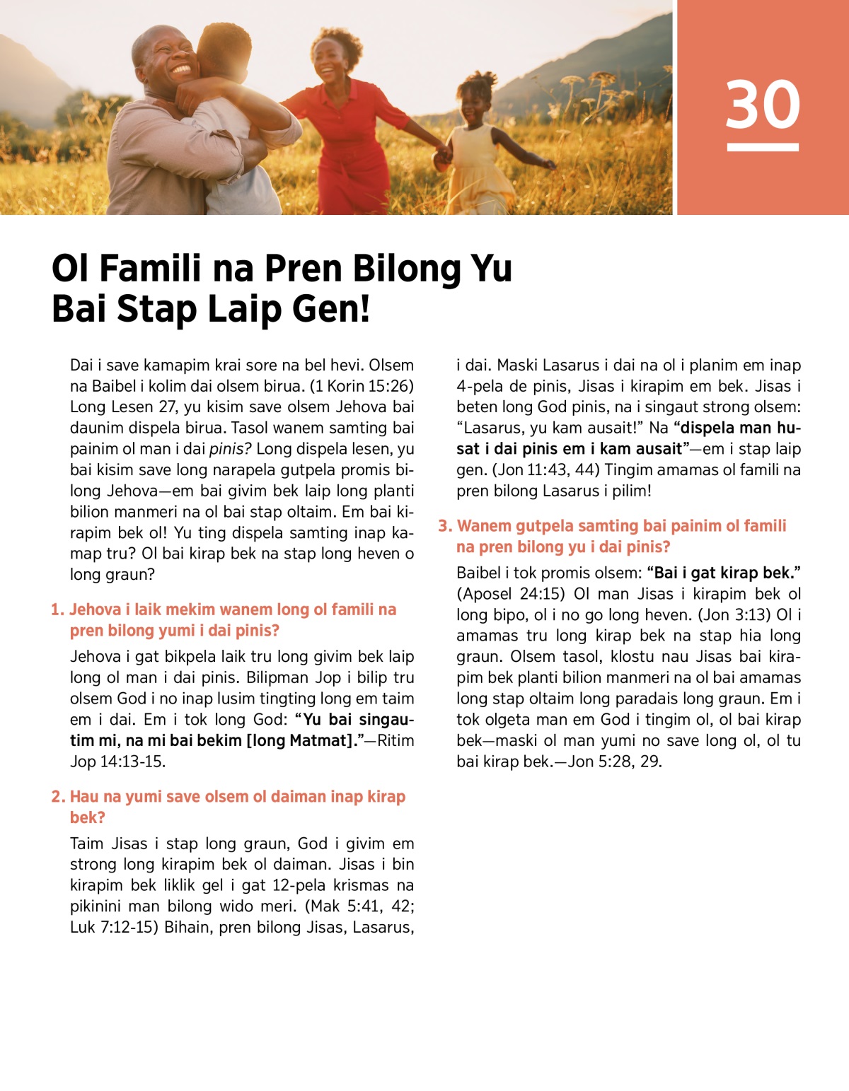 1. Jehova i laik mekim wanem long ol famili na pren bilong yumi i dai pinis?