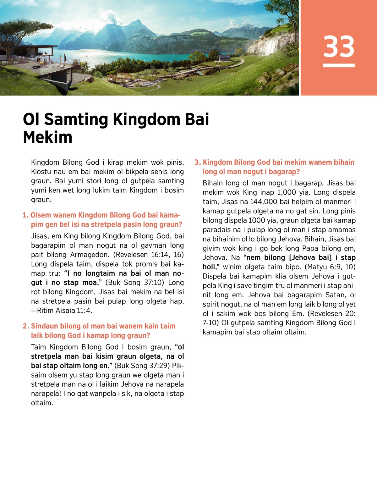 Lesen 33. Ol manmeri i stap long paradais long graun.