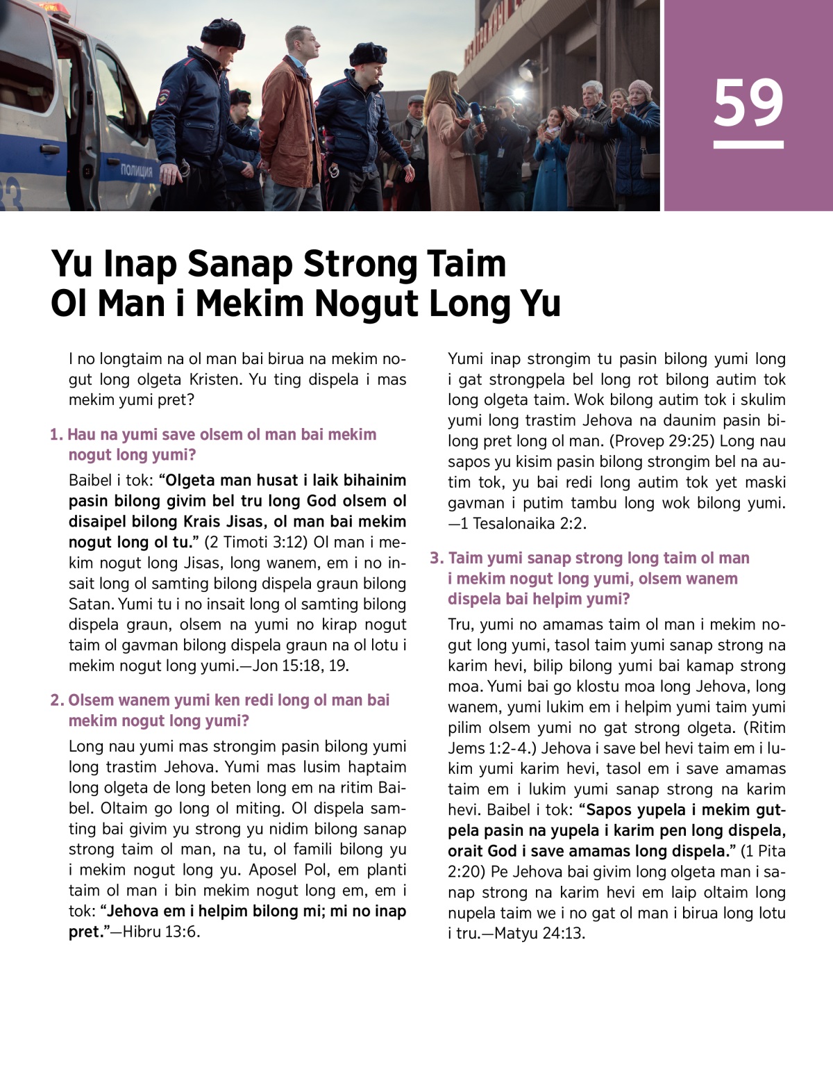 3. Taim yumi sanap strong long taim ol man i mekim nogut long yumi, olsem wanem dispela bai helpim yumi?