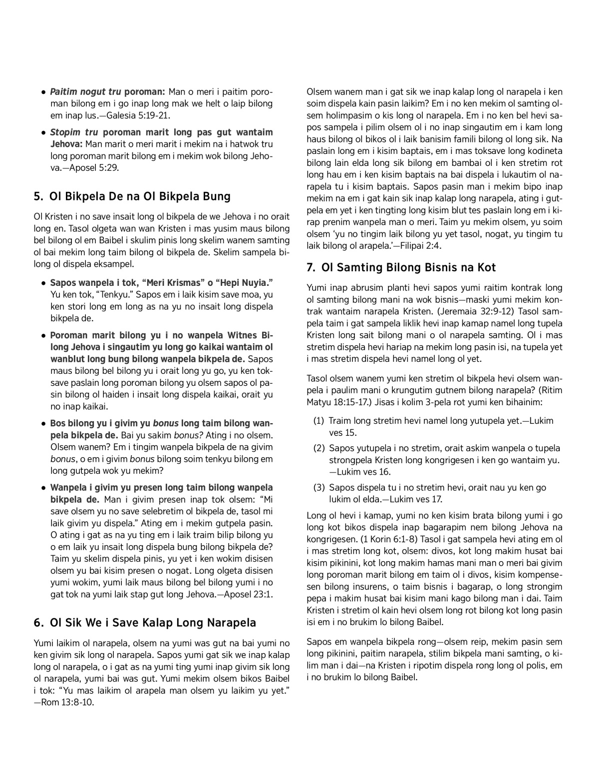 Sapos em wanpela bikpela rong—olsem reip, mekim pasin sem long pikinini, paitim narapela, stilim bikpela mani samting, o kilim man i dai—na Kristen i ripotim dispela rong long ol polis, em i no brukim lo bilong Baibel.
