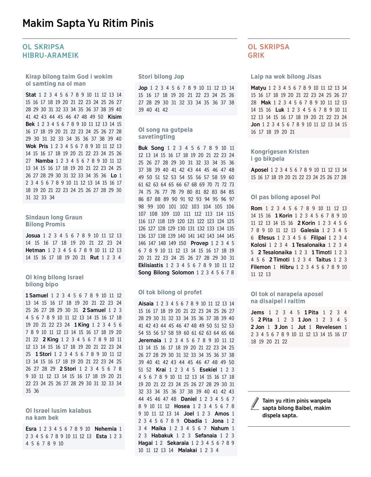 Taim yu ritim pinis wanpela sapta bilong Baibel, makim dispela sapta.