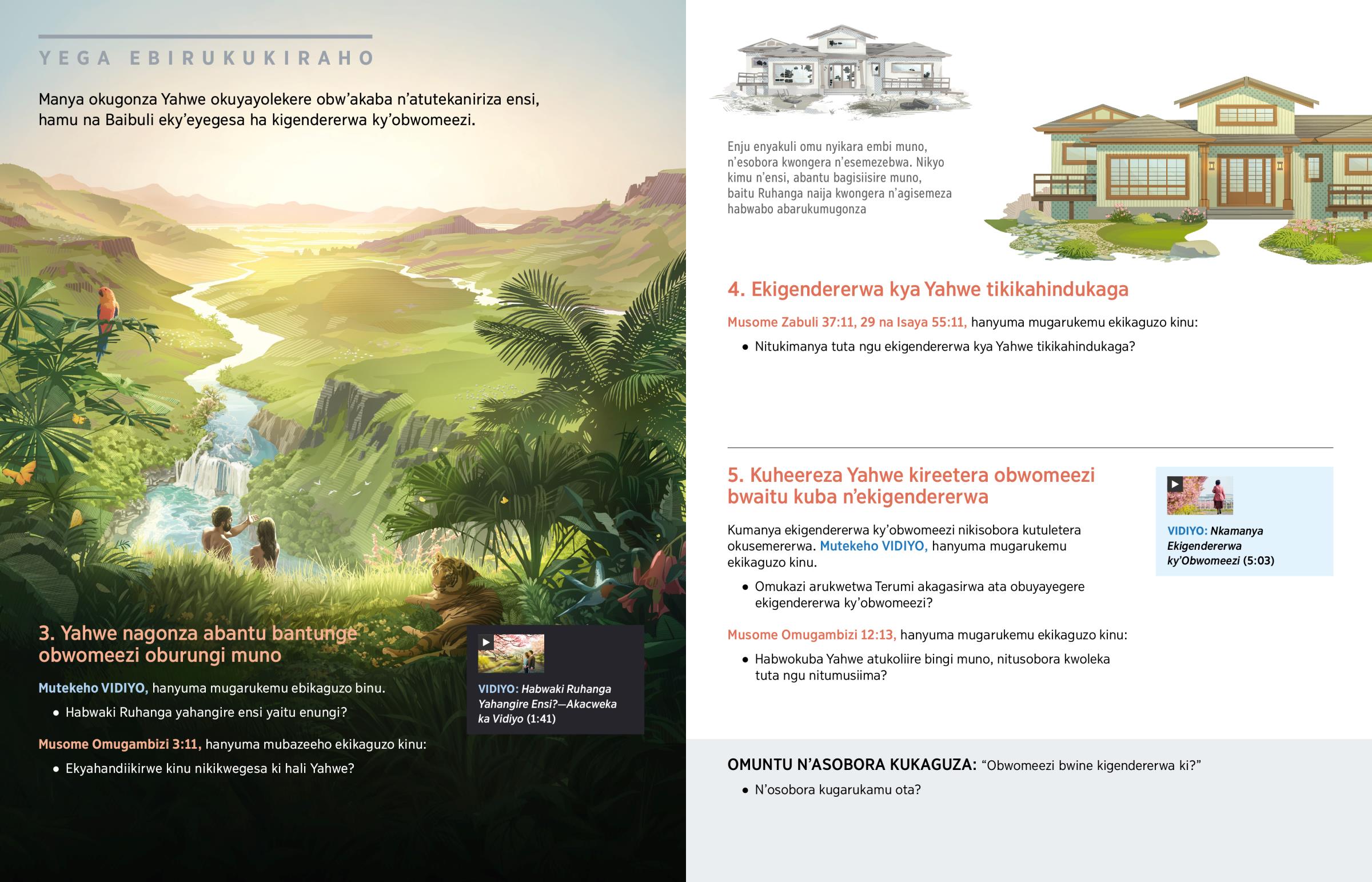 N’obukiraaba ngu obwomeezi tunukwo buli kasumi kanu,a ekigendererwa kya Ruhanga tikikahindukaga. (Isaya 46:10, 11) Yahwe nakyagonza abantu abarukumworobera kwomeera ebiro n’ebiro baine obwomeezi obuhikiriire.—Soma Okusuku’rwa 21:3, 4.