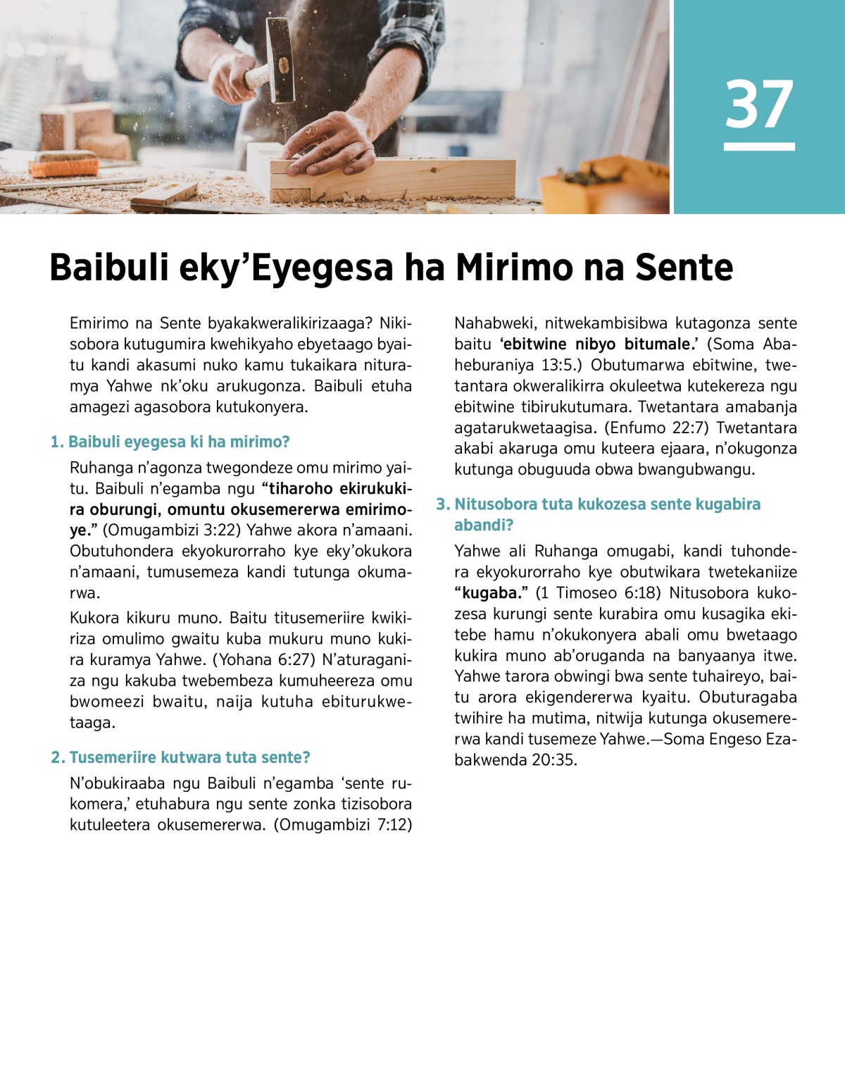 Emirimo na Sente byakakweralikirizaaga? Nikisobora kutugumira kwehikyaho ebyetaago byaitu kandi akasumi nuko kamu tukaikara nituramya Yahwe nk’oku arukugonza. Baibuli etuha amagezi agasobora kutukonyera.