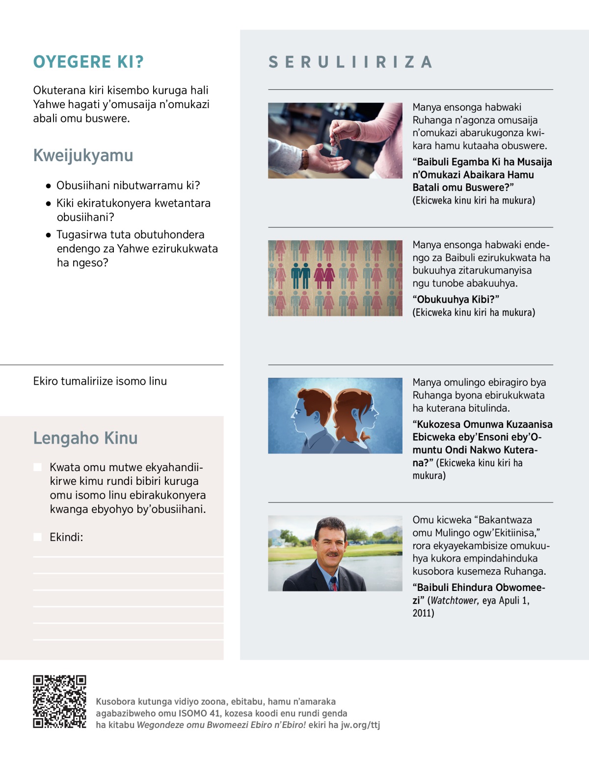 “Baibuli Egamba Ki ha Musaija n’Omukazi Abaikara Hamu Batali omu Buswere?” (Ekicweka kinu kiri ha mukura)