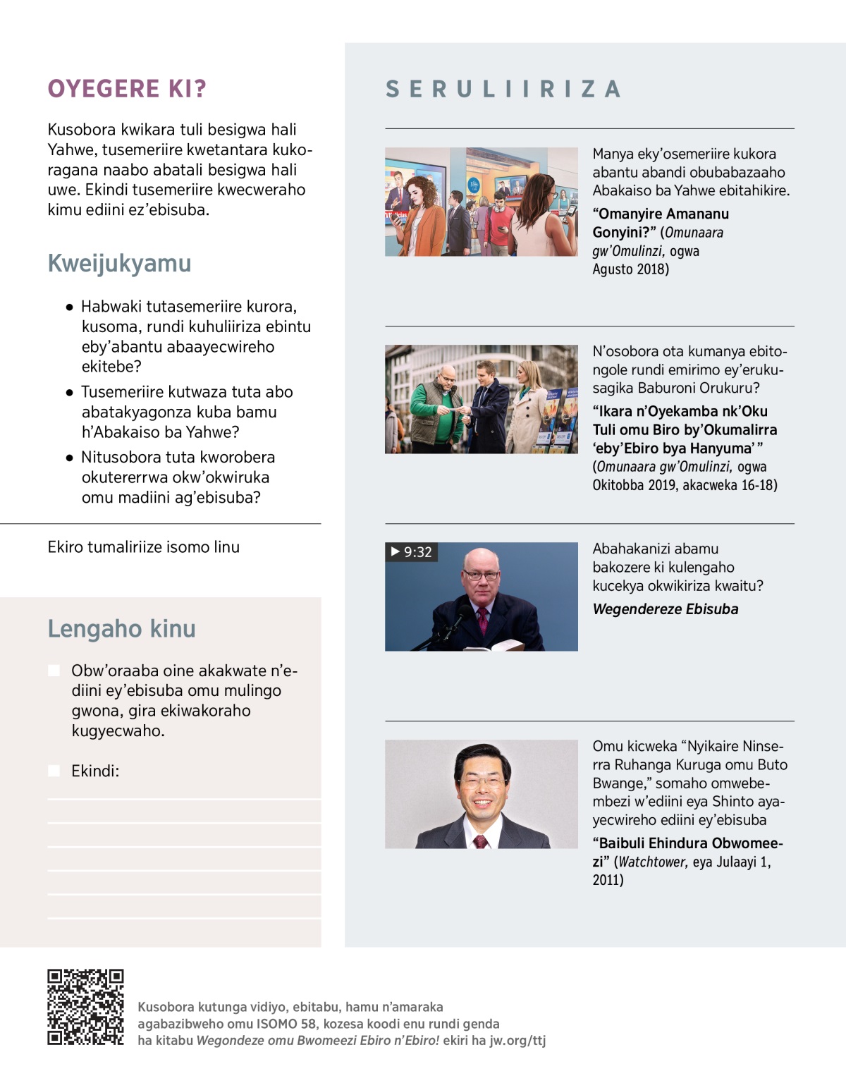 ABANTU ABAMU BAGAMBA: “Nsemeriire kumanya abaayecwireho ekitebe ekibarukubaza hali Abakaiso ba Yahwe nukwo ntonganirre amananu.”