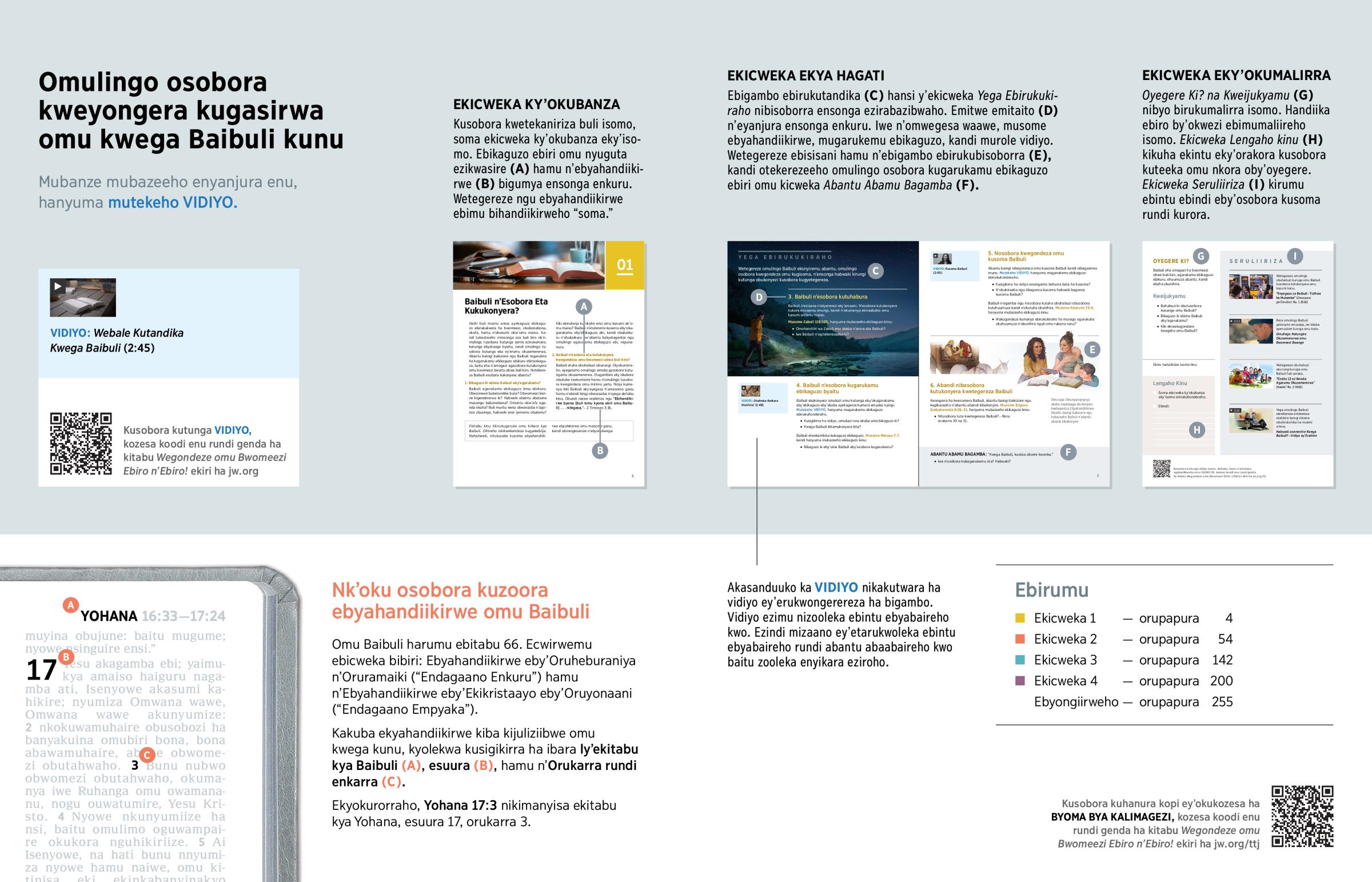 Kusobora kwetekaniriza buli isomo, soma ekicweka ky’okubanza eky’isomo. Ebikaguzo ebiri omu nyuguta ezikwasire (A) hamu n’ebyahandiikirwe (B) bigumya ensonga enkuru. Wetegereze ngu ebyahandiikirwe ebimu bihandiikirweho “soma.”